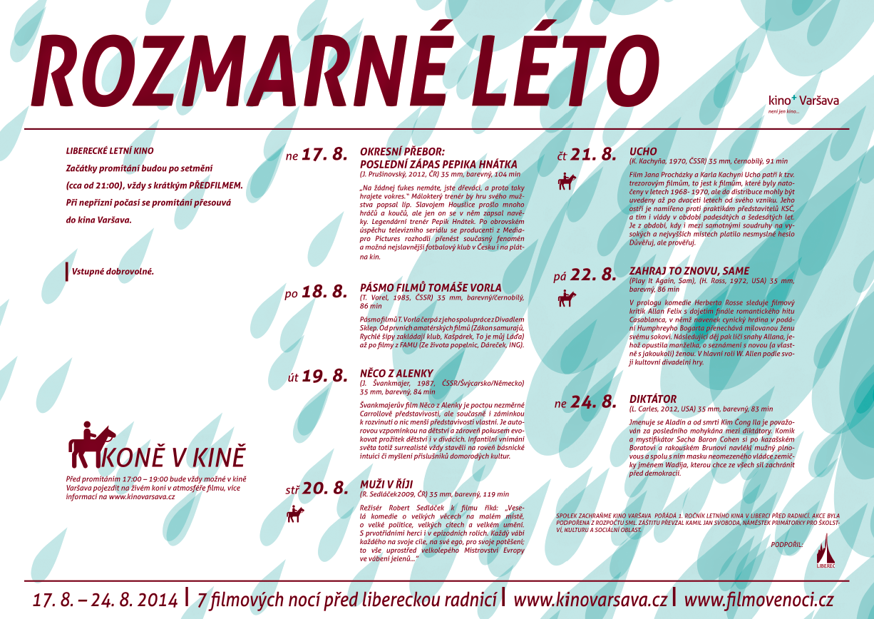 přijměte pozvání na festival ROZMARNÉ LÉTO, sedm filmových nocí před libereckou radnicí od 17. do 24. srpna. Promítání začíná vždy po 21 hodině.