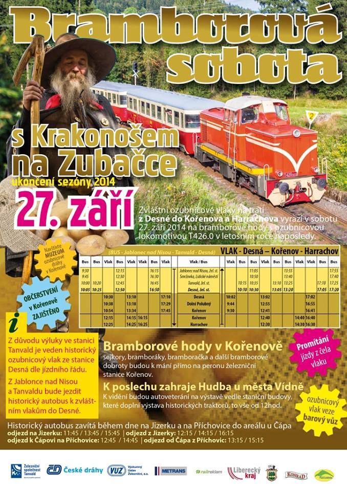 Na nejstrmější českou železniční trať letos naposled vyjedou zvláštní ozubnicové vlaky. Kvůli rekonstrukci železniční stanice Tanvald pojedou zvláštní vlaky jen mezi Desnou, Kořenovem a Harrachovem. Z Jablonce nad Nisou a z Tanvaldu bude zavedena náhradní autobusová doprava. Historický autobus vás doveze přímo ke zvláštnímu vlaku do Desné.
