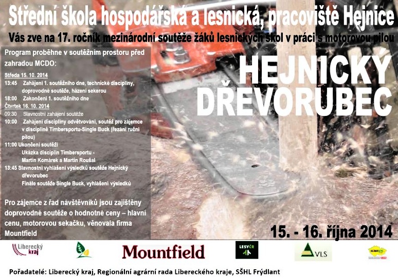 Tradiční dřevorubecké klání mladých adeptů lesnických škol. Návštěvníky akce čeká bohatý program: soutěž žáků v práci s motorovou pilou dle mezinárodních pravidel, soutěž žáků s ručním dřevorubeckým nářadím, představení disciplín Timbersportu předními českými závodníky. Také nejrůznější soutěže pro děti z mateřských škol, žáky základních škol i dospělé. Své mistrovství a zručnost předvedou na tradiční soutěžní akci v Hejnicích žáci lesnických škol z České republiky, Slovenska i Německa.