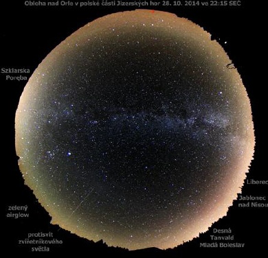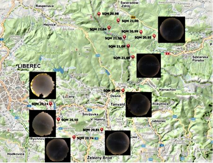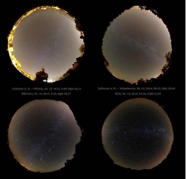 Na srovnávacích snímcích níže vidíme, jak je obloha světlá např. nad Jabloncem nad Nisou a tmavá nad Orle v Jizerské oblasti tmavé oblohy. Podrobný snímek oblohy nad Orle popisuje zdroje světelného znečištění v okolí.