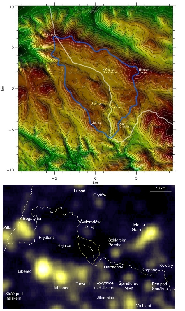 Velikost oblasti je necelých 75 km2, nadmořská výška je nad 800 m. n. m. Z této oblasti je stále dobře vidět Mléčná dráha a počet hvězd viditelných očima je zde kolem 1 900 (ve městech 200, ve velkoměstech 20). V oblasti žije malá populace a je zde málo instalovaného umělého osvětlení (na české straně pouze obec Jizerka, na polské straně osada Orle a Chatka Górzystow). Hřebeny hor znemožňují přímou viditelnost světel z okolních měst a obcí. Je zde zachovalá příroda a vyhlášená Chráněná krajinná oblast, do které je možné noční životní prostředí snadno začlenit. Je to také velmi přitažlivá oblast pro turisty, kteří se tak na informačních tabulích dozvídají o dalším aspektu ochrany přírody a krajinného rázu.
