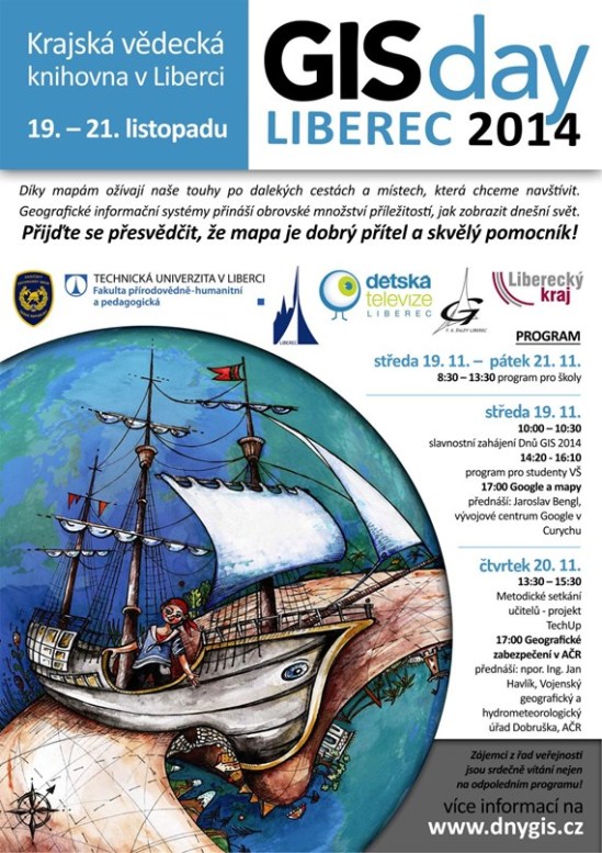 LIBEREC – GIS – již čtrnácté Dny GIS Liberec se letos uskuteční ve dnech 19. – 21. listopadu Krajské vědecké knihovně, Rumjancevova ulice, v Liberci.