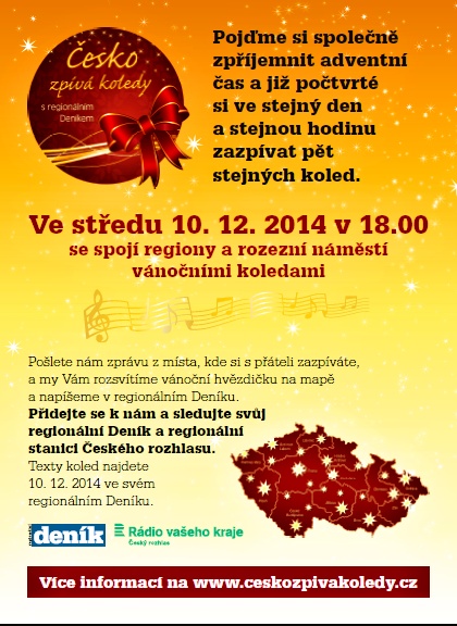 0001Frýdlant – Liberecký deník organizuje akci Česko zpívá koledy. Přijďte ve středu 10. prosince 2014 v 18 hodin na nám. T. G. M. ve Frýdlantě a uvidíte, co se bude dít.