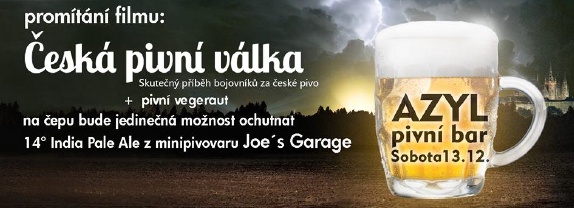 Liberec – Milovníci zlatavých moků mohou v sobotu 13. prosince prožít malou pivní slavnost. Večer plný piva, nejenom v půllitrech, pořádají v Pivním baru Azyl v Liberci, v Široké ulici. Kromě ochutnávky pivních speciálů, zde návštěvníci shlédnou nový český dokumentární film Česká pivní válka s podtitulem Skutečný příběh bojovníků za české pivo. Akce startuje v 18 hodin.