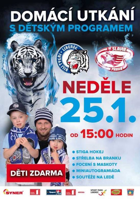 V neděli 25. 1. se můžete těšit na souboj se Slavií, který bude zpestřen speciálním doprovodným programem pro rodiny s dětmi. Tomu je uzpůsoben i začátek duelu, který bude od 15:00. Více info na http://bitly.com/BiliTygri_rodina. Tak se dnes dobře nalaďte a příští neděli vezměte s sebou i své ratolesti.