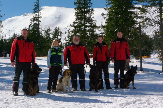 Na vrchol se podle něj spolu se psy dopravili rolbou a skútrem, kde velitel František Schejbal vyhodnotil nejlepší směr a postup hledání. Psovodi poté s členem horské služby traverzovali svah vrcholu a stěnu lavinového kotle, kde v tu chvíli probíhalo pátrání místních složek v rojnici se sondami.
