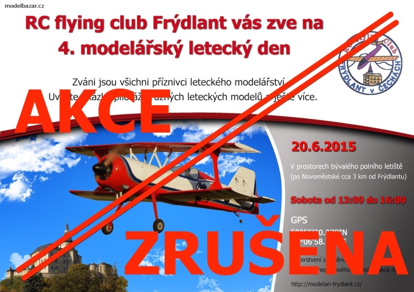 Bohužel pro nepřízeň počasí je 4. modelářský letecký den zrušen. Předpokládáme náhradní termín do měsíce.