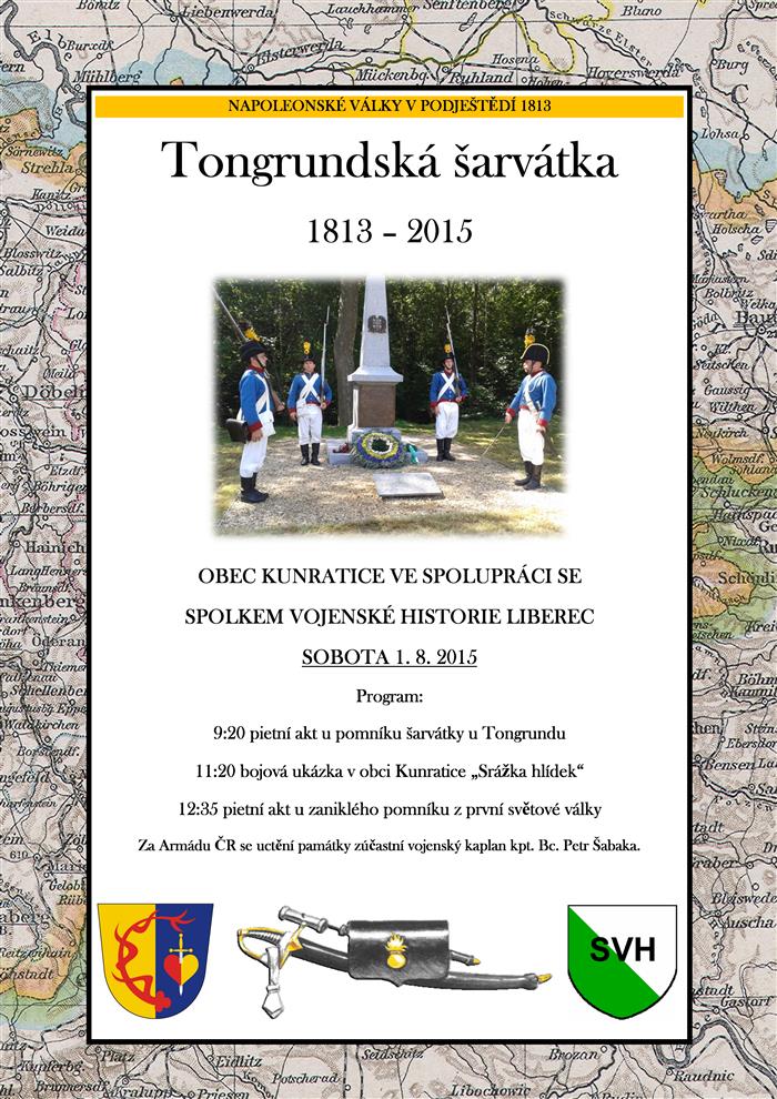 Obec Kunratice ve spolupráci se Spolkem vojenské historie Liberec organizují v sobotu 1. srpna vzpomínkovou akci na Tongrudskou šarvátku z roku 1813.