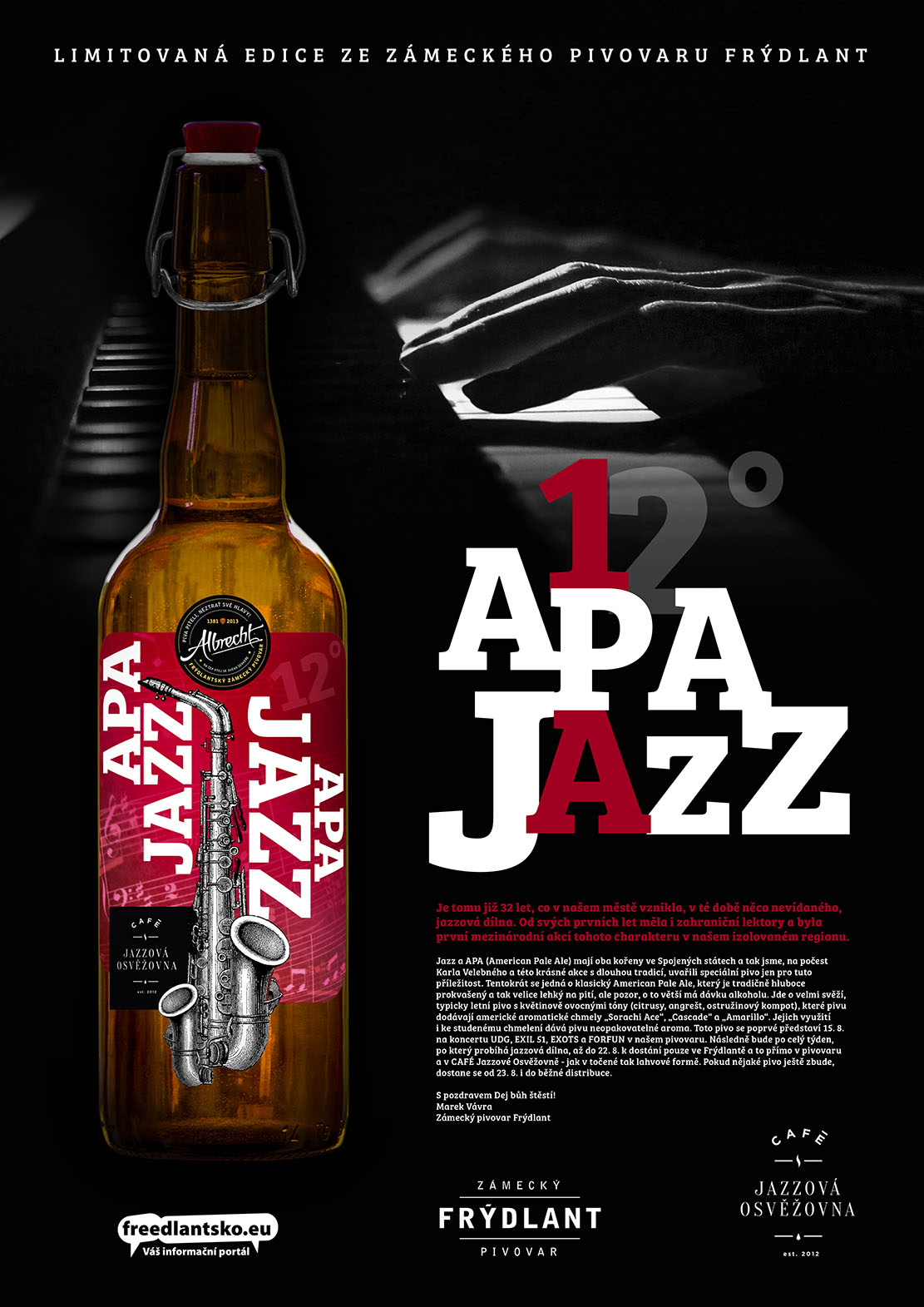 Zámecký pivovar Frýdlant – Je to neuvěřitelné, právě byl dopit poslední sud APA JAZZ, takže zase za rok. Je to sotva 13 dní, co jsme představili tuto novinku a již nám v pivovaru v sudové podobě došla a v lednici je několik posledních lahví. APA JAZZ jako festivalové pivo se bude vařit vždy pouze 1x do roka na Jazzovou dílnu, takže se máte aspoň na co těšit, protože jste si jí opravdu oblíbili. V příštích dnech se s ní můžete ještě setkat na naší pivotéce a v Azylu v Liberci, Ochutnávkové pivnici v Brně, v Praze má pár sudů Dno pytle a pivnice Ferdinand. Posledních pár sudů a lahví ještě vyškemral náš dobrý známí PIVONOŠ a zavezl je všude možně (dokonce i do Chomutova). Na závěr bych rád zdůraznil že ¾ tanku jste vypili jen a pouze ve Frýdlantu a to buď přímo v pivovaru, nebo Jazzové osvěžovně a co je neuvěřitelné za pouhých 13 dní. Kdyby nám to někdo řekl, když jsme s tím začínali, nevěřili bychom mu. Je super, jak jste si za rok naší existence zvykli na svrchně kvašená piva, které v Libereckém kraji vaříme jako jediný minipivovar. Děkuje za vaší přízeň, všichni jste úžasní.