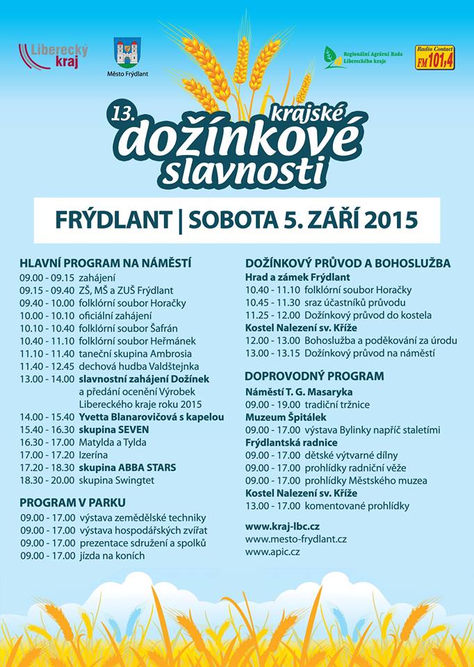 Dožínkové slavnosti ale budou probíhat celý den, až do večera.