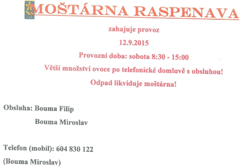 Provozní doba: sobota od 8.30 do 15.00 hodin