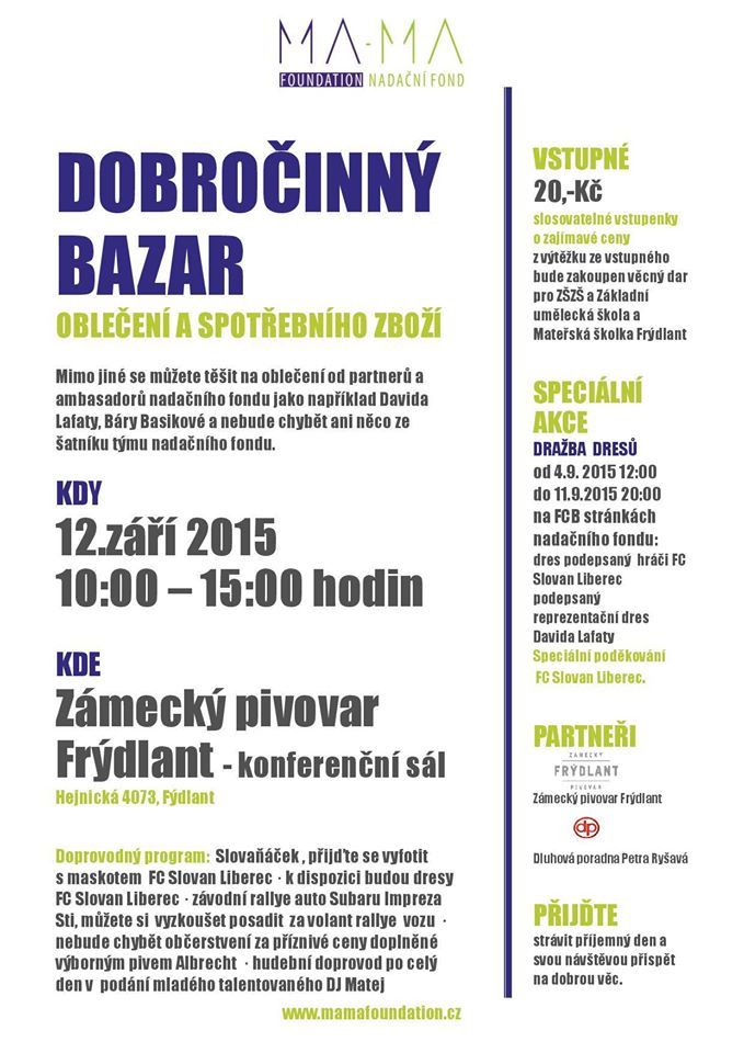 Přijďte strávit příjemný den a svou návštěvou přispět na dobrou věc.