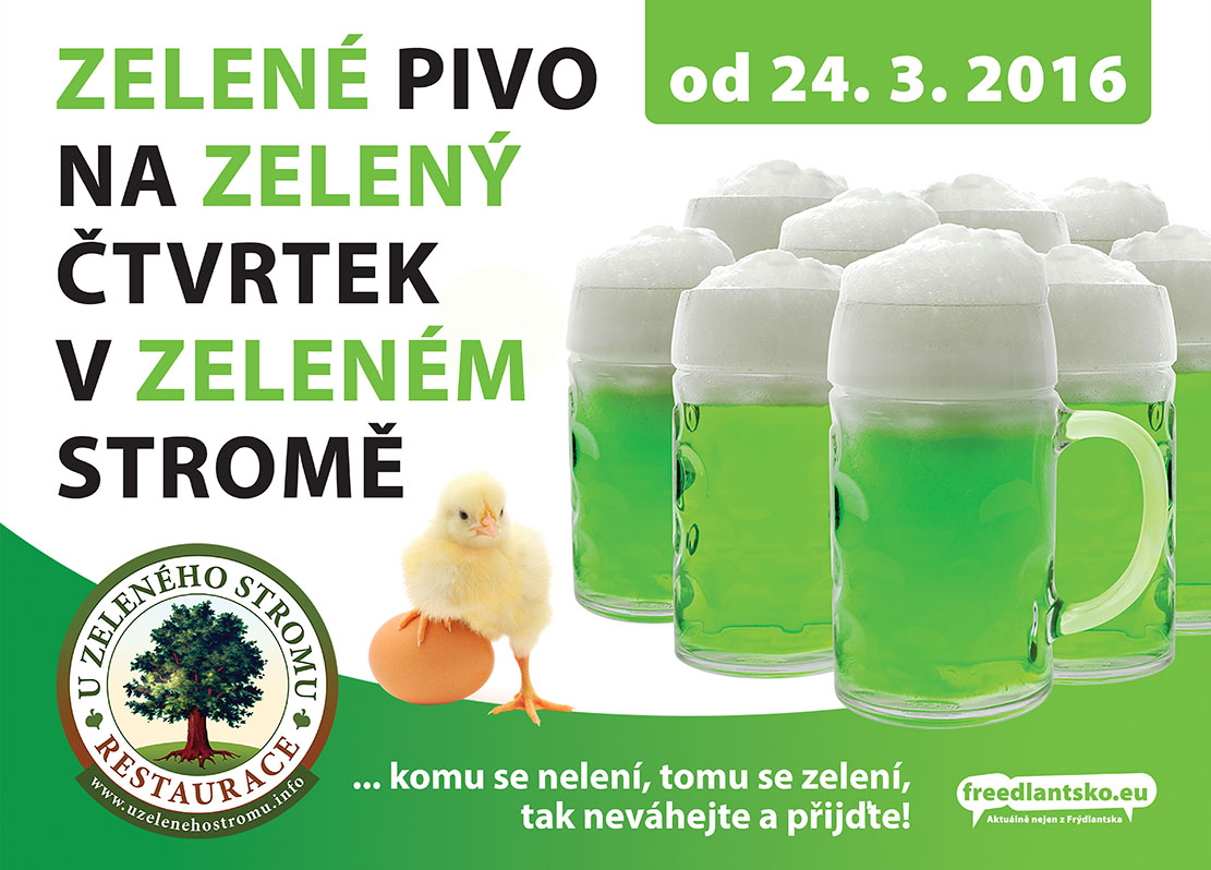 Zelené pivo na zelený čtvrtek v Zeleném stromě v Lázních Libverda. Akce začíná ve čtvrtek 24. března 2016.