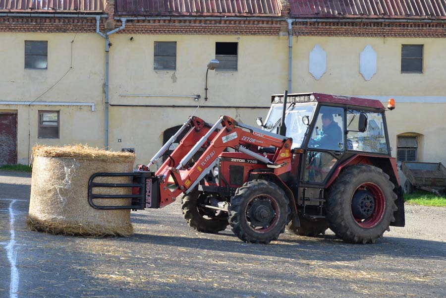 Sedlácký víceboj (házení balíků na cíl, převoz pytlů kolečkem, ruční dojení)