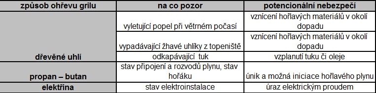 Velký pozor dávejte při rozdělávání ohně. „V grilech na dřevěné uhlí používejte pouze podpalovače k tomu určené, např. podpalovače z dřevité vlny, lihové gelové nebo tekuté. V žádném případě nepoužívejte hořlavé kapaliny či plyny,“ varuje Radek Poloprutský.