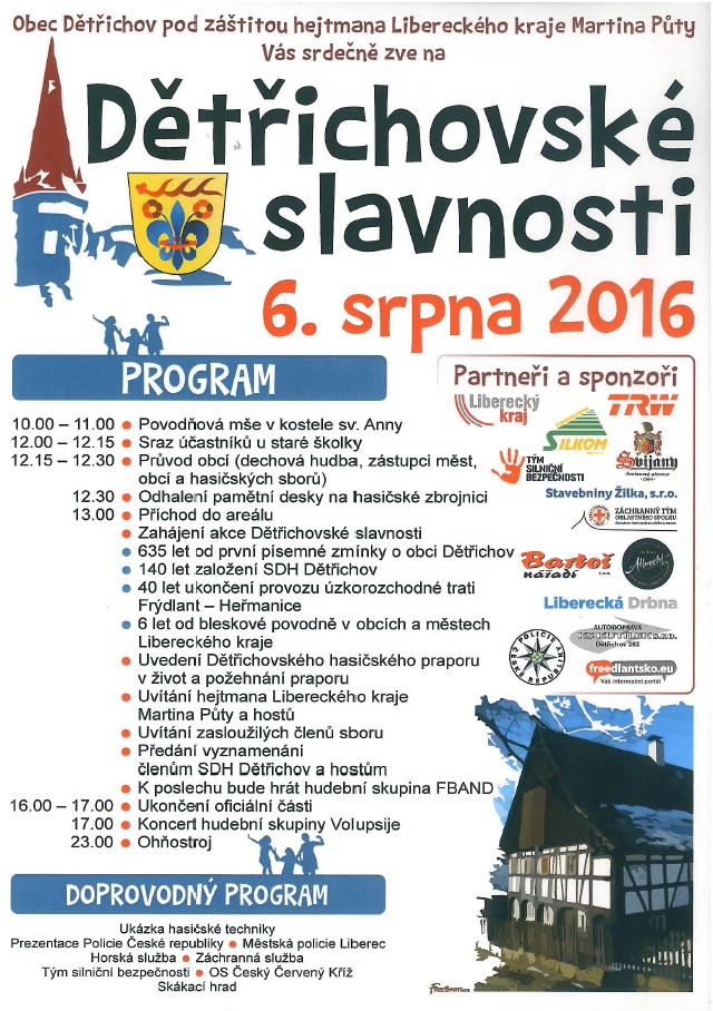 052Obec Dětřichov pod záštitou hejtmana Libereckého kraje Martiny Půty Vás srdečně zve na Dětřichovské slavnosti