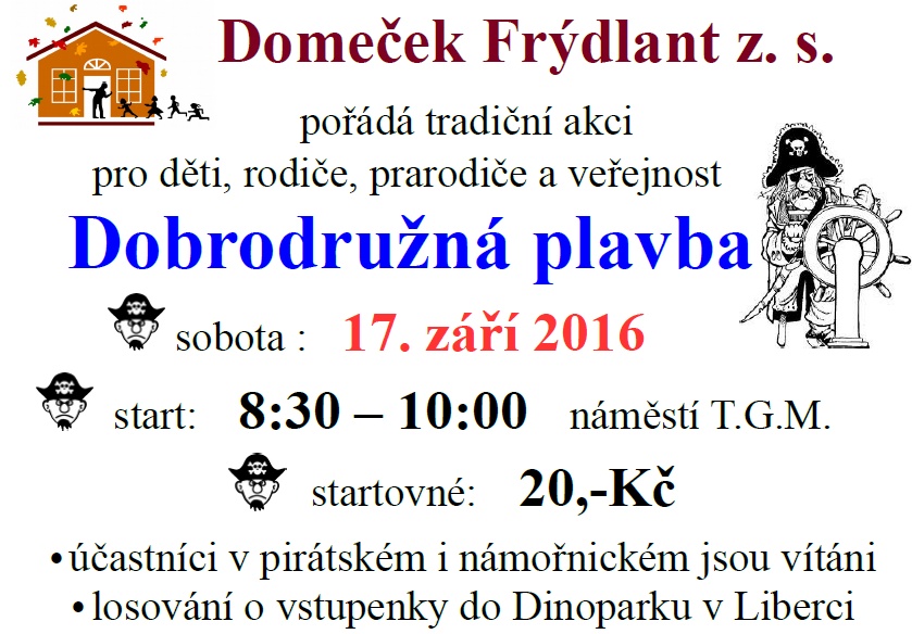 Domeček Frýdlant z. s. pořádá akci pro děti, rodiče, prarodiče a veřejnost Dobrodružná plavba
