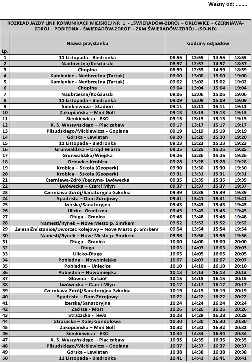 Z lázeňského Świeradówa – Zdróje bude  4x denně, prozatím jen o sobotách a nedělích, zajíždět do Nového Města pod Smrkem bezplatná autobusová linka.