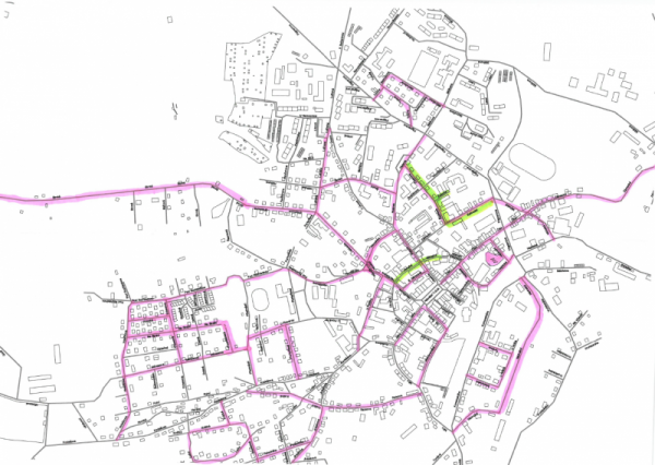 Ulice, které bude velký zametací stroj uklízet od úterý do čtvrtka jsou vyznačeny na mapách růžovou barvou.