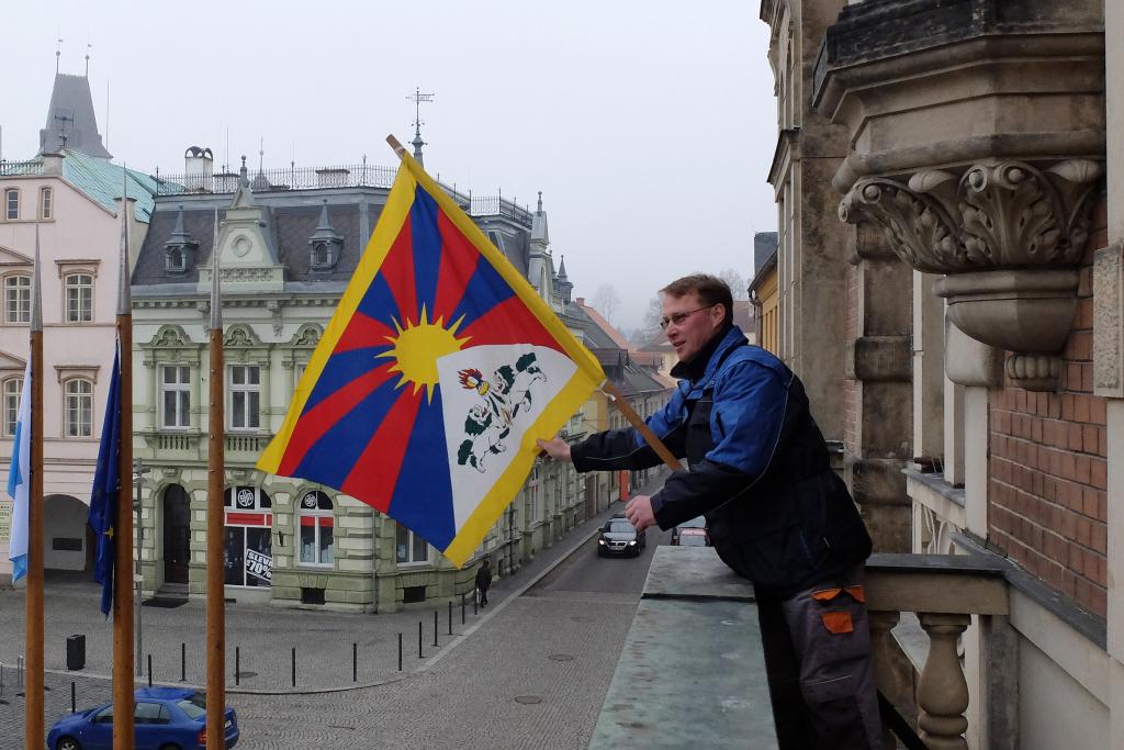 Ve Frýdlantu zavlála tibetská vlajka na radnici poprvé v roce 2009. „Od té doby ji vyvěšujeme 10. března, tedy v den povstání Tibeťanů v roce 1959 proti okupaci, pravidelně,“ říká starosta Frýdlantu Dan Ramzer.
