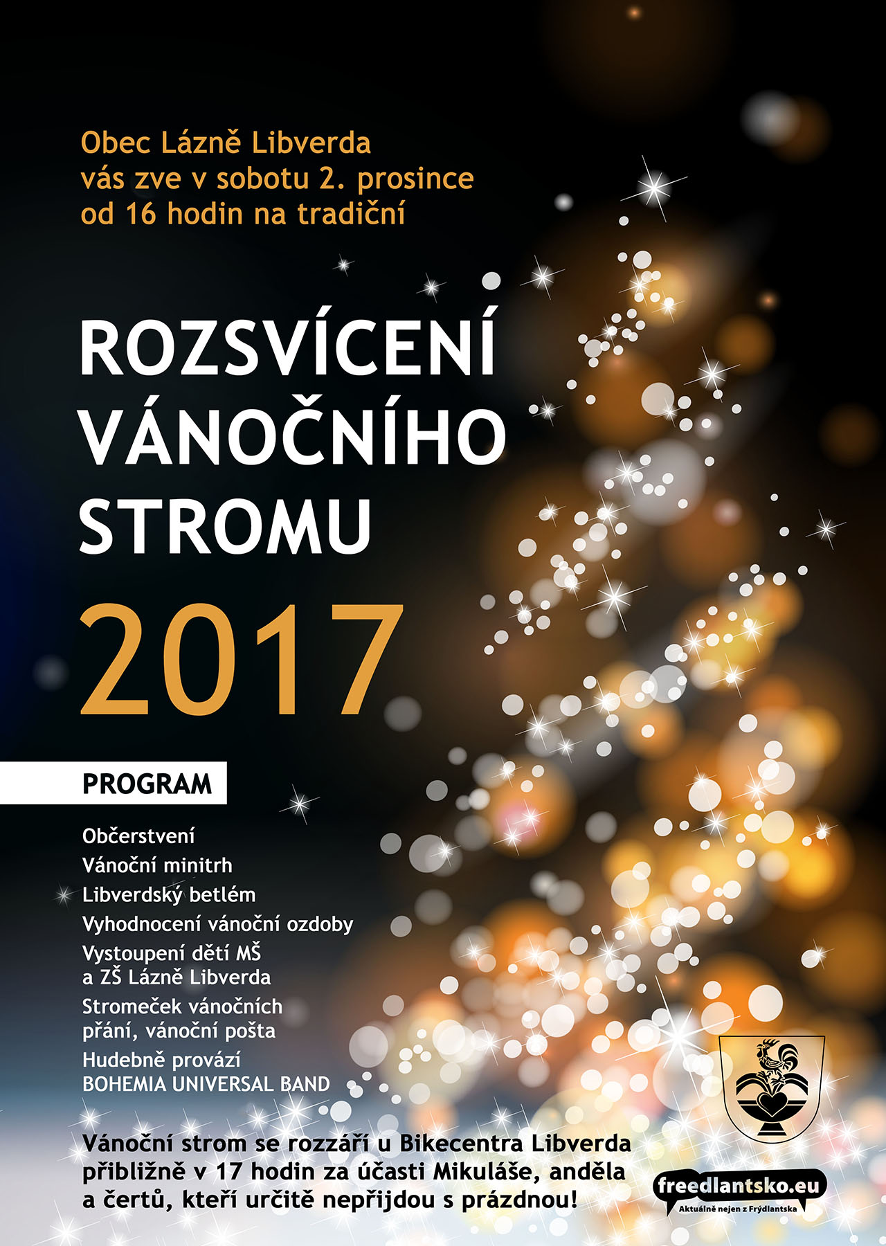 Obec Lázně Libverda vás zve v sobotu 2. prosince 2017 od 16 hodin na tradiční ROZSVÍCENÍ VÁNOČNÍHO STROMU.