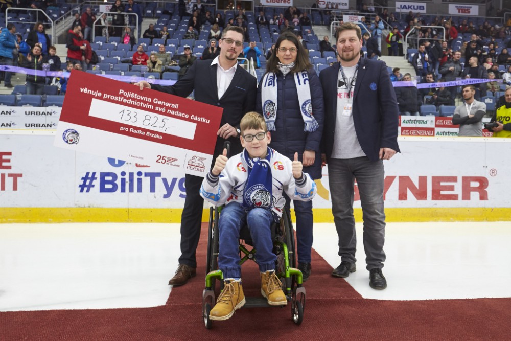 Každý fanoušek svou přítomností na posledním domácím utkání Tygrů proti Plzni podpořil věrného fandu Radka, který bojuje s následky dětské mozkové obrny. Pojišťovna Generali teď za každého fanouška věnovala 25 korun, což je dohromady 133 825 korun. Díky nim se bude moci věnovat potřebné rehabilitaci.