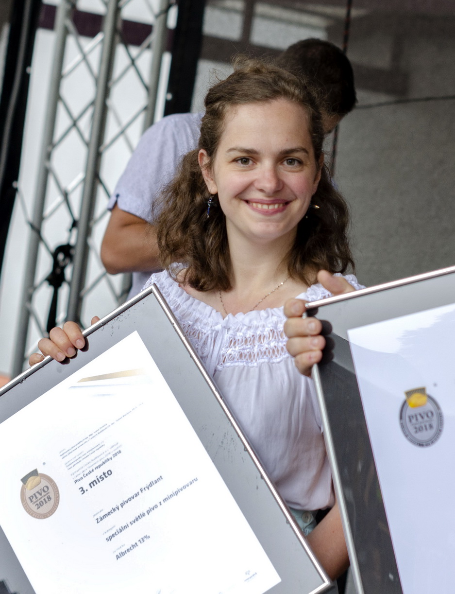 S obrovskou radostí oznamujeme, že Zámecký pivovar Frýdlant získal na soutěži celkem 10 ocenění a stal se tak historicky nejúspěšnějším pivovarem této soutěže. Frýdlantští posbírali celkem 6 prvních a 4 třetí místa v nejrůznějších kategoriích od výčepních piv až po nejsilnější speciály. Ceny převzaly sládková pivovaru Ing. Barbora Kracíková a technoložka Alena Dančová. Zámecký pivovar Frýdlant zahájil výrobu piva Albrecht na vlastní technologii v dubnu 2014 a od roku 2015 pravidelně sklízí úspěchy v prestižních pivovarských soutěžích.