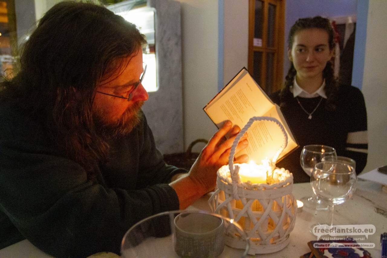 Každý pátek od šesti hodin v obchůdku Pekárna Poezie čteme své oblíbené básníky i diskutujeme vlastní tvorbu. Čtení si zpříjemňujeme dobrým vínem a pečivem z Mariánské pekárny. Zazněly básně Ezry Pounda, Charlese, Baudelaira, Jima Morrisona a Elizabeth Bishop.