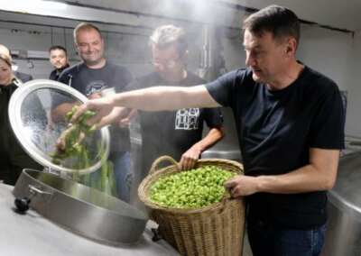„Nápad pěstovat na naučné zemědělské stezce kromě jiných plodin i chmel, jsme s kolegou Jaroslavem Palarcem dostali vlastně už při jejím zakládání před čtyřmi lety. Už tehdy jsme měli takový sen, že bychom z něj jednou uvařili školní pivo. A povedlo se, navíc se z česání chmele a následného vaření školního piva stává hezká tradice,“ říká ředitel SŠHL Miroslav Kudrna. Obě školní piva půjdou letos opět i do volného prodeje, takže si je bude moci koupit i veřejnost. „K dostání budou jak v lahvích, tak stáčená v Zámeckém pivovaru Frýdlant, bez kterého by nevznikla, a jen v lahvích pak také v naší prodejně v centru Frýdlantu. Loni jsme nechali uvařit 4 tisíce litrů Hospodáře a 2 tisíc litrů Čeledína a obě piva byla prodaná do měsíce. Letos proto u Hospodáře přidáme další 2 tisíce litrů, takže se ho uvaří na 6 tisíc litrů, u Čeledína zůstaneme na dvou tisících litrů,“ přibližuje Miroslav Kudrna.