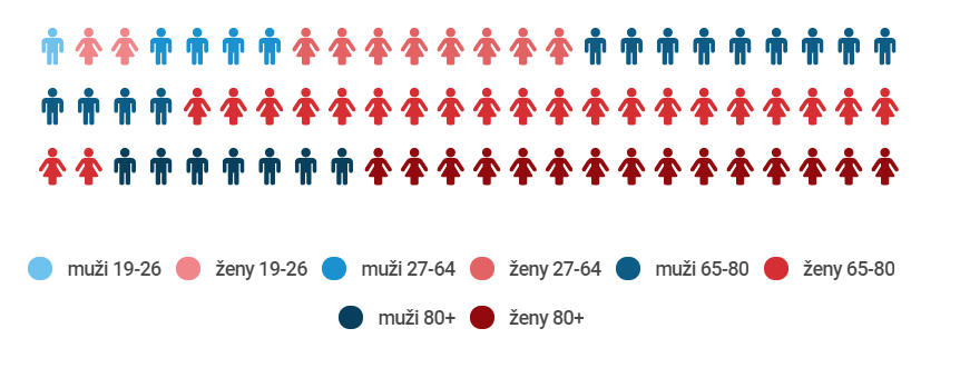 V anketě jsme se také chtěli dozvědět, kdo by službu nejčastěji využíval. Z odpovědí vyplývá, že by to byla z 65 % žena a klienti by byli nejčastěji ve věku 65+.