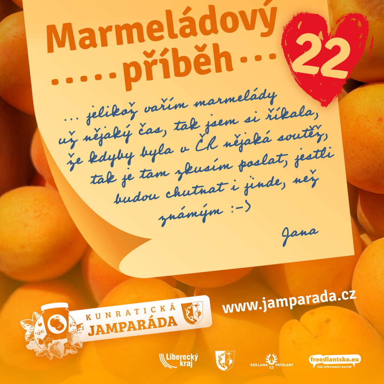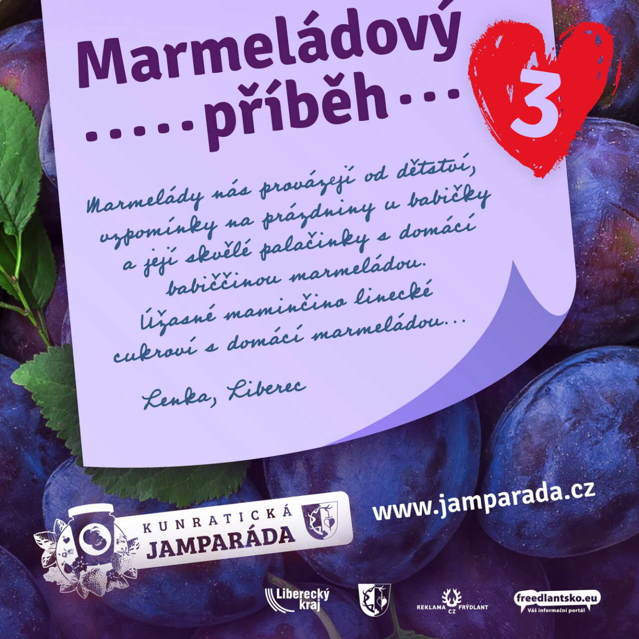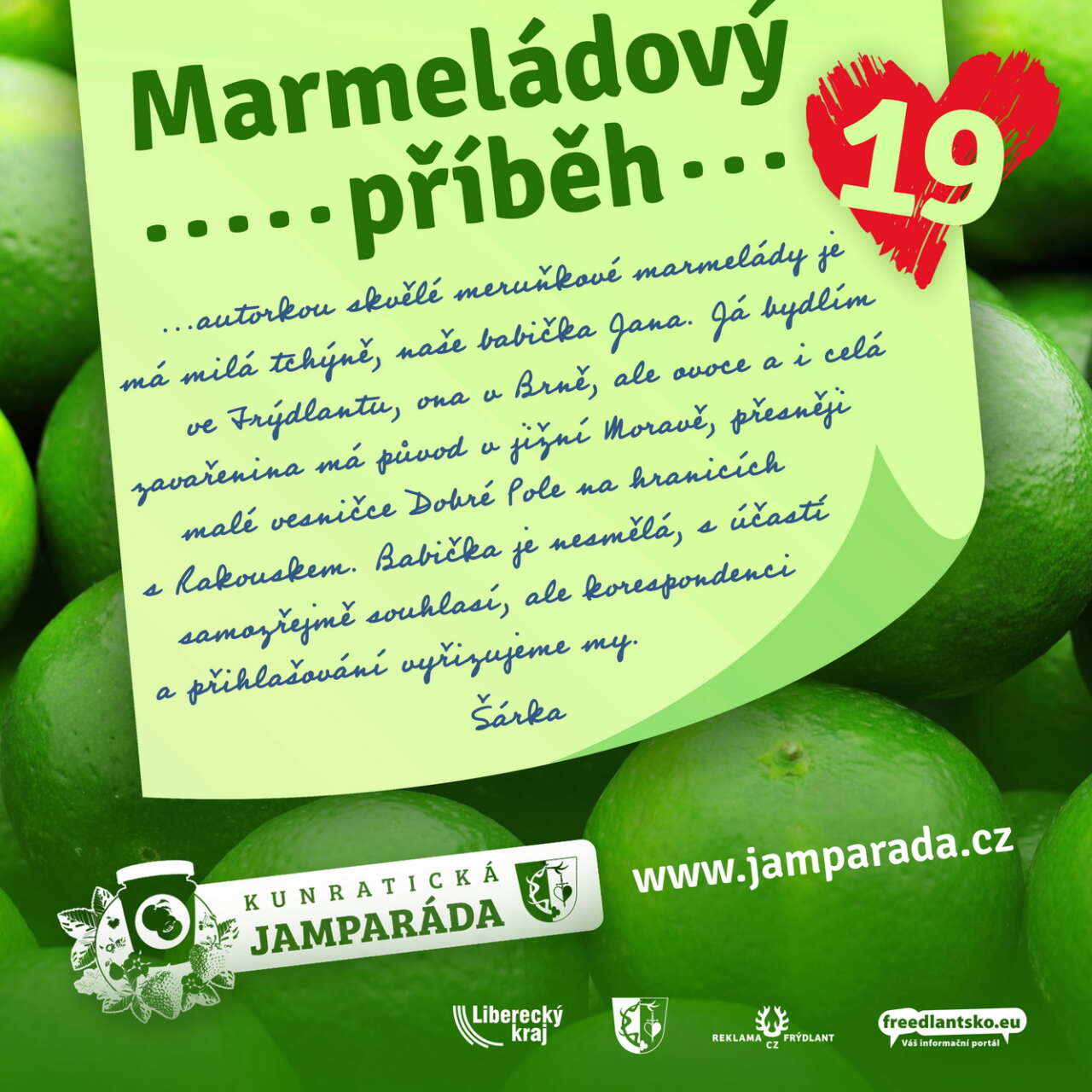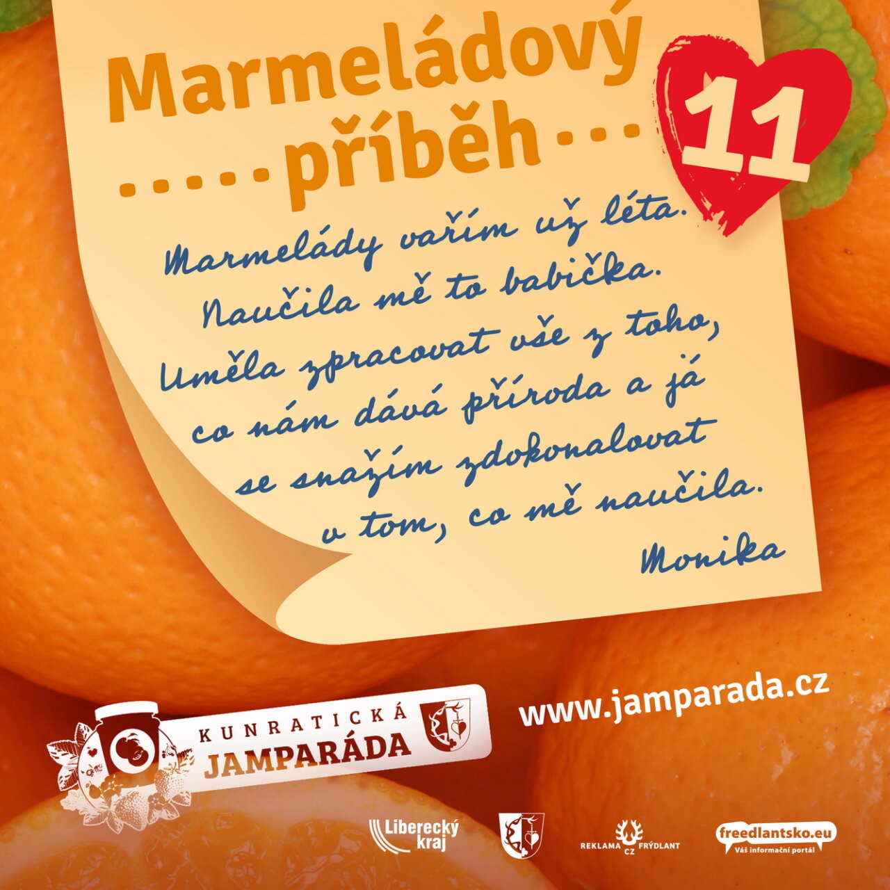 První listopadová sobota patří v severočeských Kunraticích tradičně slavnostnímu vyhlášení výsledků zdejší marmeládové soutěže Kunratická JamParáda. Letošního ročníku se zúčastnilo celkem 115 soutěžících z 56 míst nejen naší země, kteří do soutěže přihlásili 386 vzorků, rozdělených do 27 samostatných kategorií.