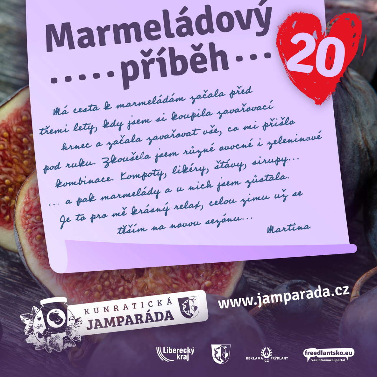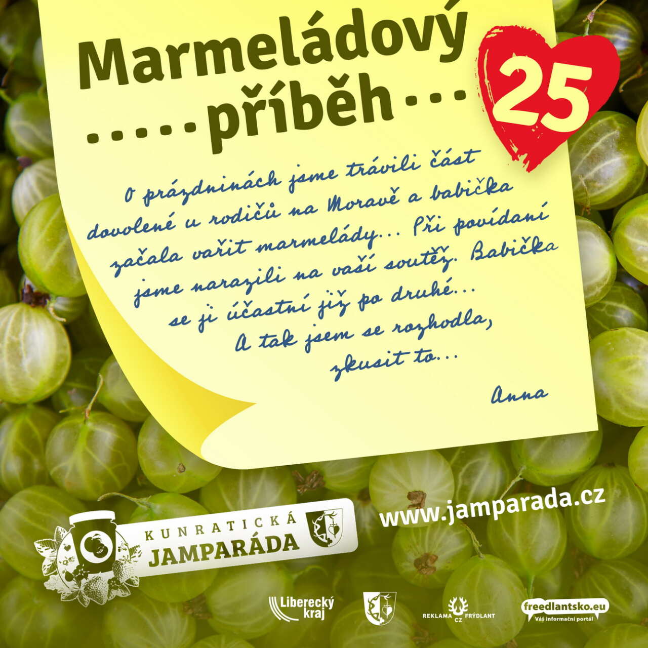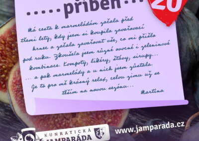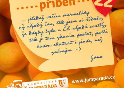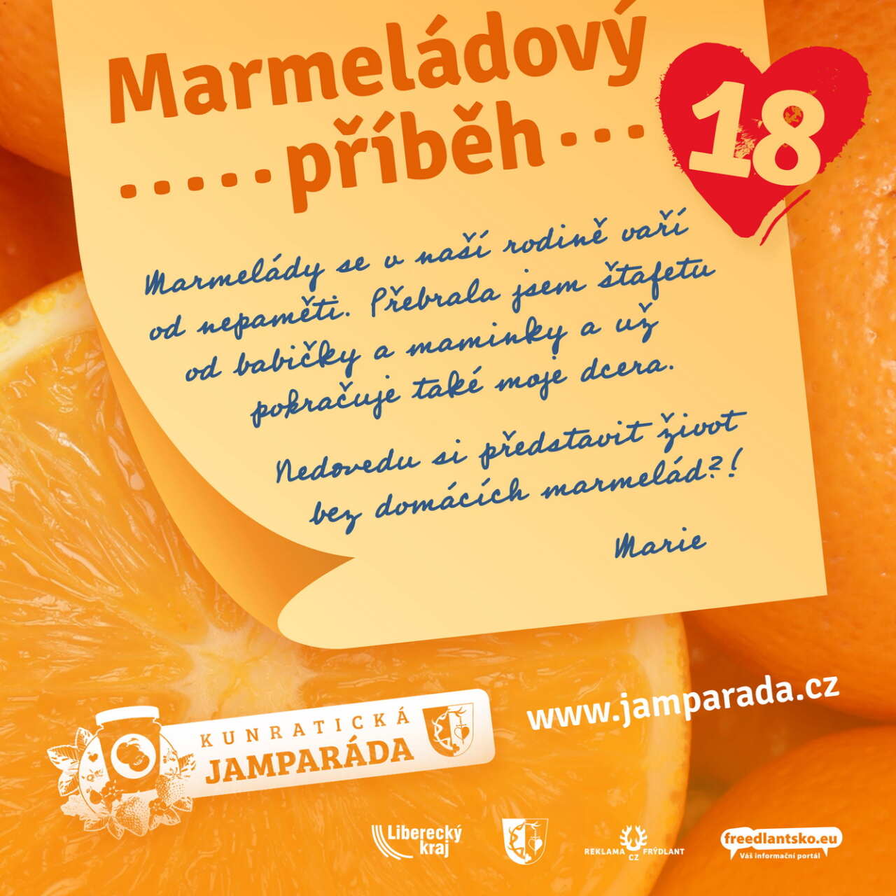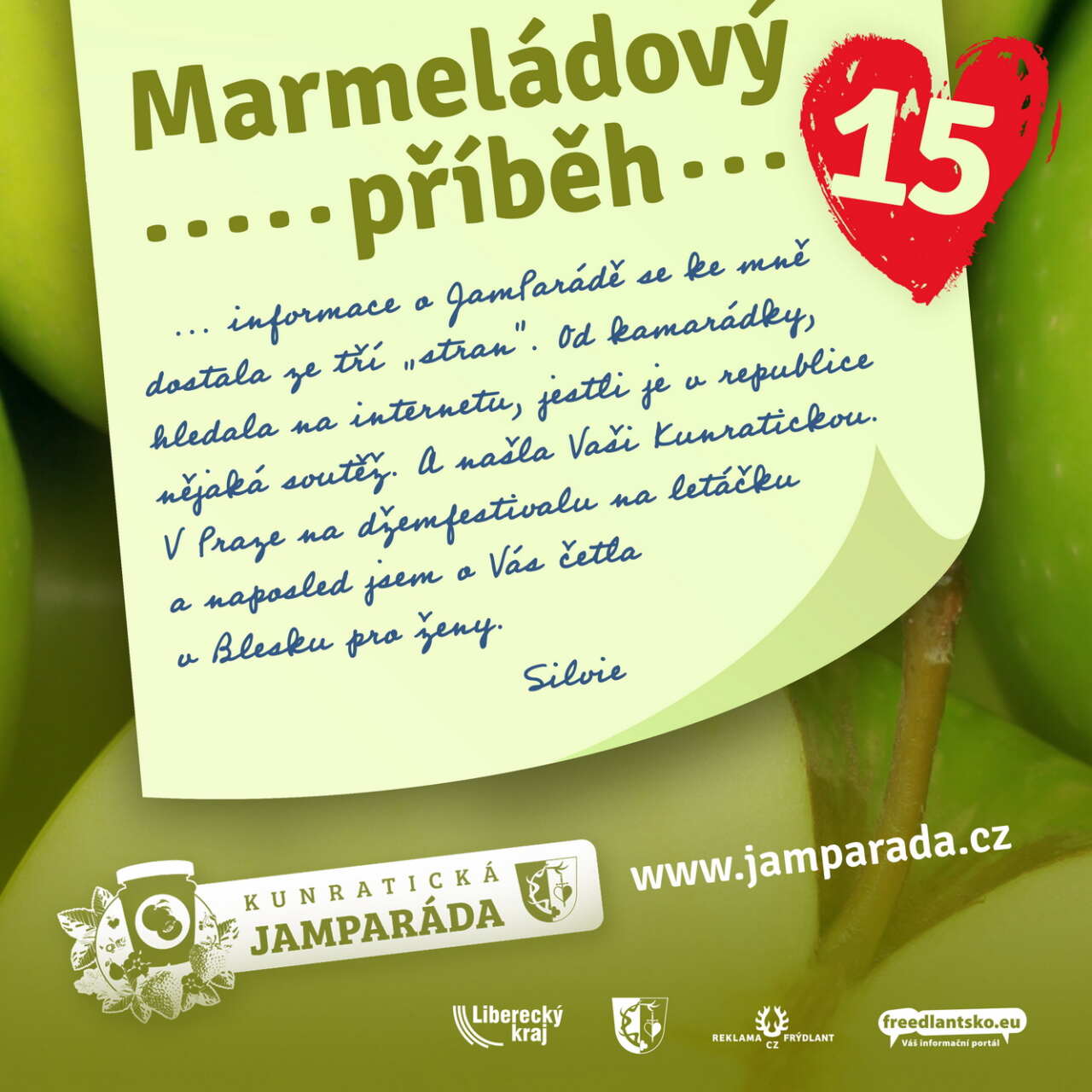 První listopadová sobota patří v severočeských Kunraticích tradičně slavnostnímu vyhlášení výsledků zdejší marmeládové soutěže Kunratická JamParáda. Letošního ročníku se zúčastnilo celkem 115 soutěžících z 56 míst nejen naší země, kteří do soutěže přihlásili 386 vzorků, rozdělených do 27 samostatných kategorií.