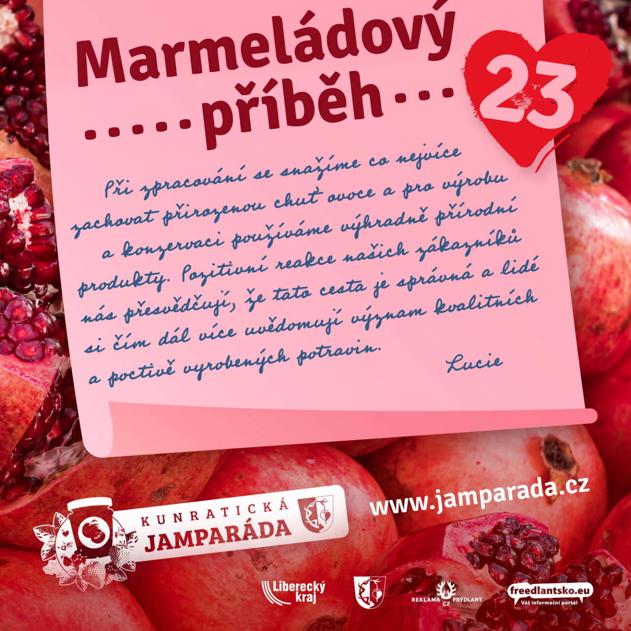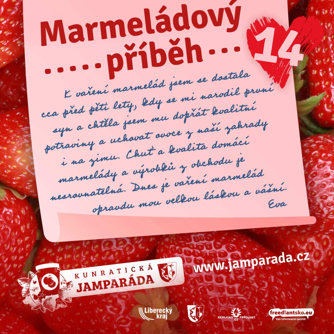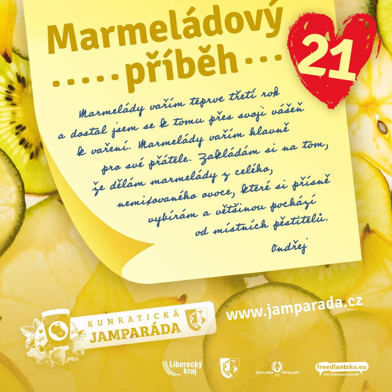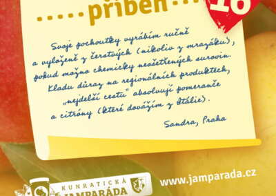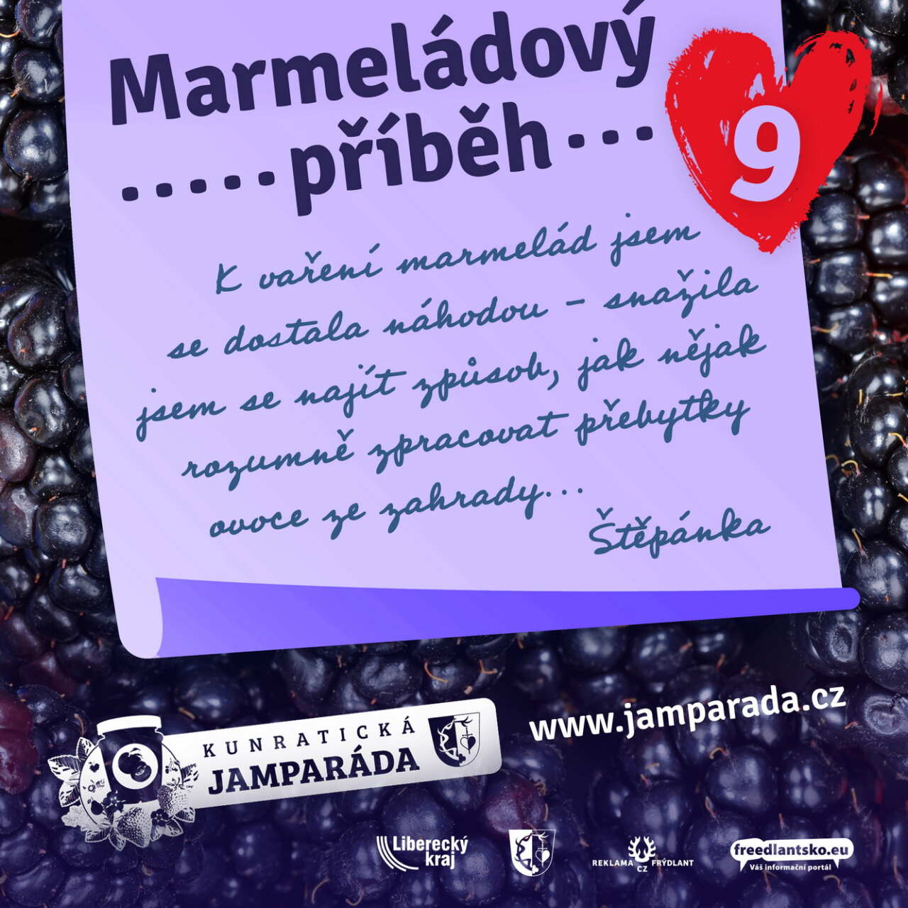 První listopadová sobota patří v severočeských Kunraticích tradičně slavnostnímu vyhlášení výsledků zdejší marmeládové soutěže Kunratická JamParáda. Letošního ročníku se zúčastnilo celkem 115 soutěžících z 56 míst nejen naší země, kteří do soutěže přihlásili 386 vzorků, rozdělených do 27 samostatných kategorií.