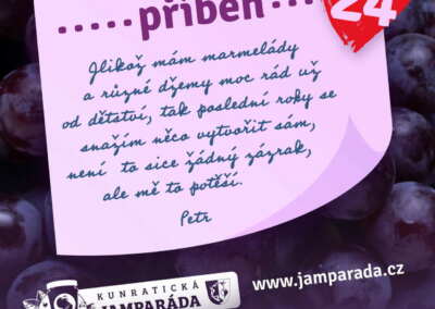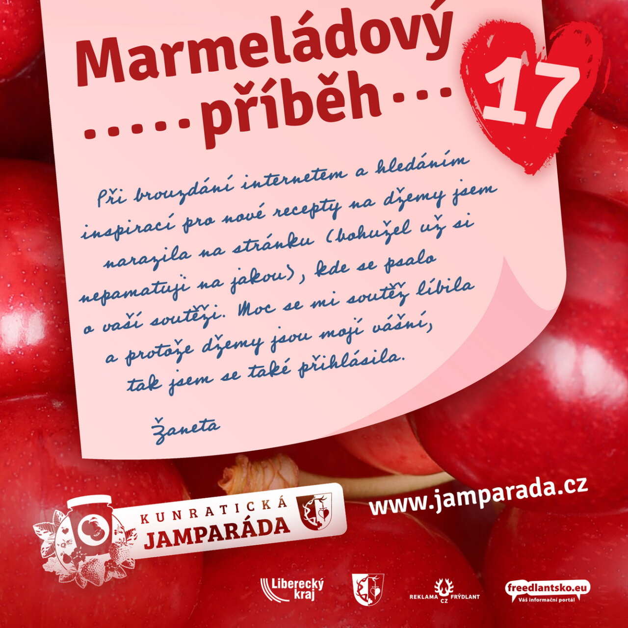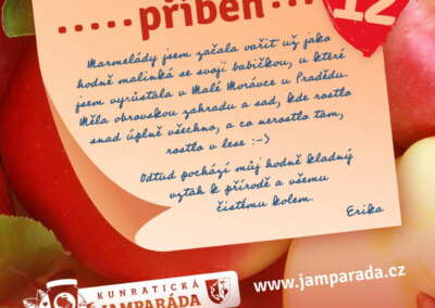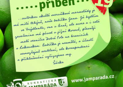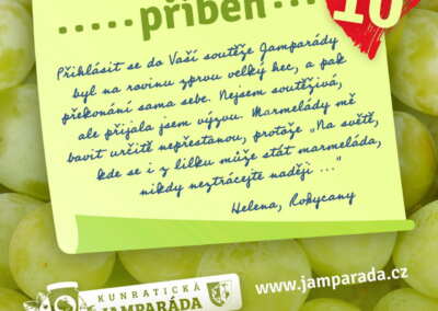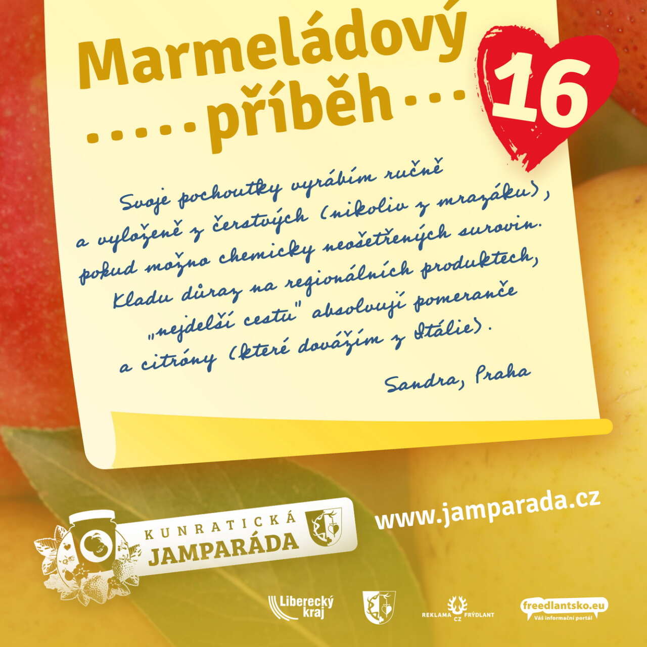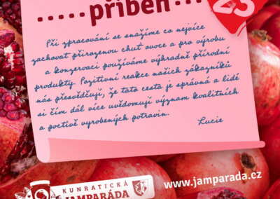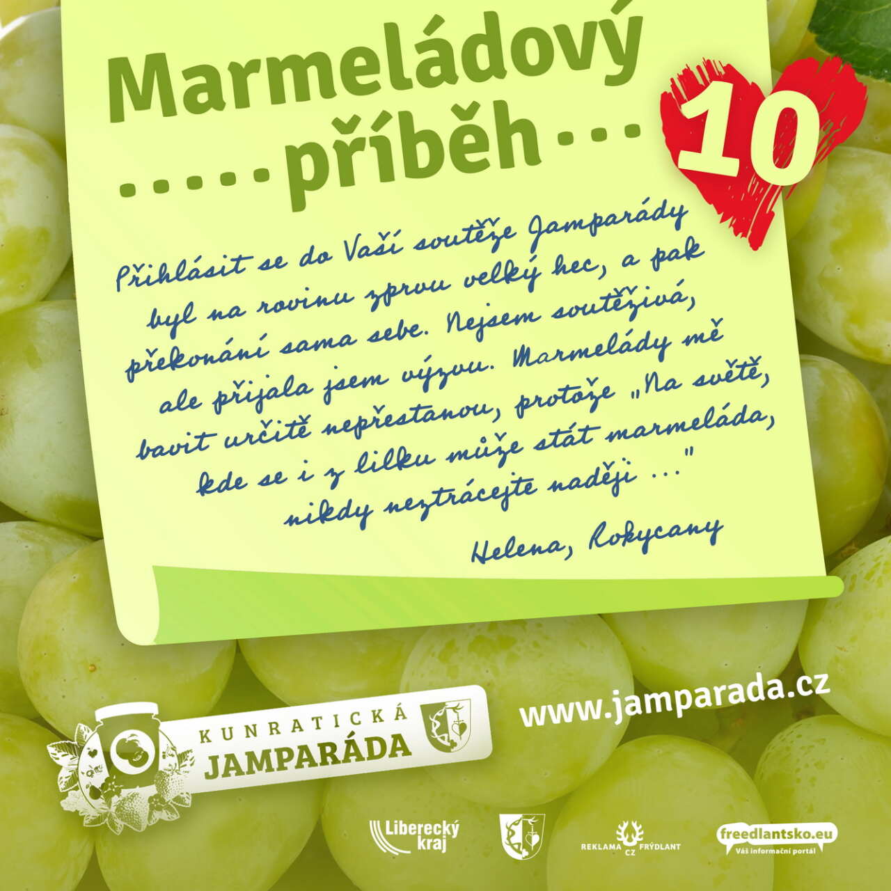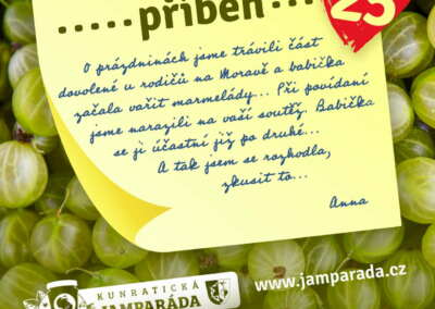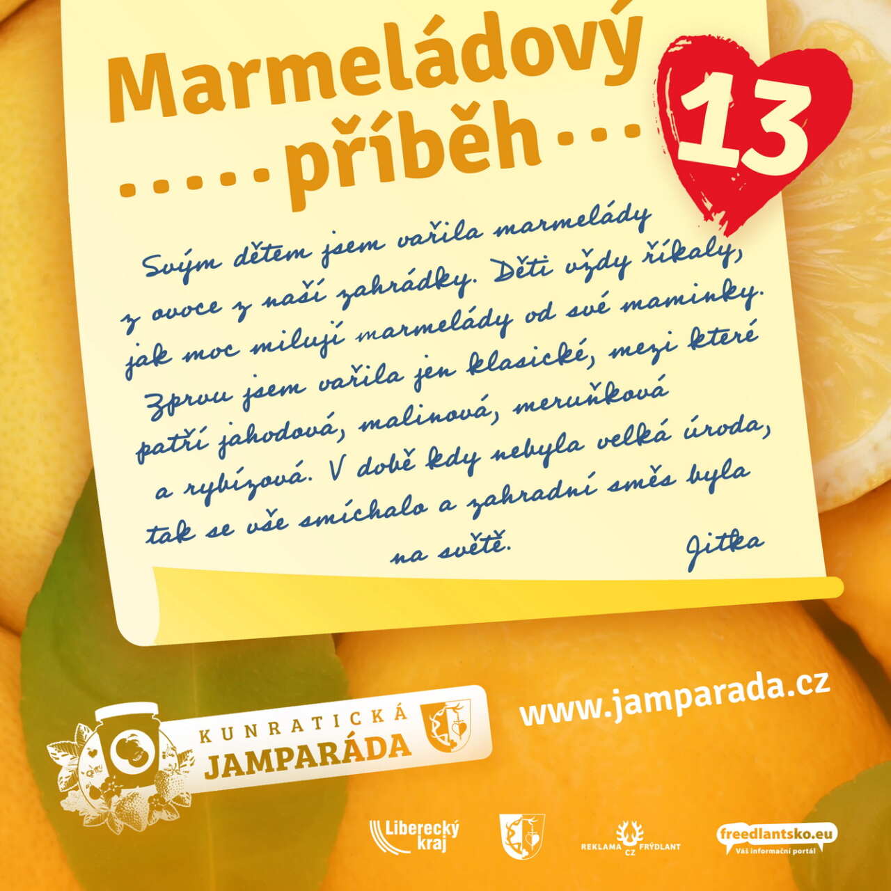 První listopadová sobota patří v severočeských Kunraticích tradičně slavnostnímu vyhlášení výsledků zdejší marmeládové soutěže Kunratická JamParáda. Letošního ročníku se zúčastnilo celkem 115 soutěžících z 56 míst nejen naší země, kteří do soutěže přihlásili 386 vzorků, rozdělených do 27 samostatných kategorií.