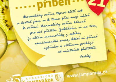 Po loňské pauze, kdy muselo vyhodnocení proběhnout online, se na sál místního Kulturního domu opět vrátili návštěvníci, jež mohli ochutnat všechny přihlášené marmelády, džemy či povidla, přičemž měli možnost hlasovat v prestižní kategorii „Cena publika“. V 15 hodin odstartovala veřejná ochutnávka spojená s hlasováním v návštěvnické části soutěže, kterou po dvou hodinách vystřídalo vyhlašování výsledků stanovené pětičlennou porotou. Organizátoři předali celkem 81 ocenění v jednotlivých kategoriích. Návštěvníci svým hlasováním vybrali tři nejlepší marmelády, jimiž letos byly 1. ostružina paní Petry Formanové z Čížova, 2. mango maracuja paní Michaely Štěpničkové a 3. jahodová pana Václava Kuncla z Frýdlantu. Marmeládovým městem se stal Frýdlant a marmeládovou obcí jsou Býškovice. Nejvzdálenější vzorky pocházely z jednoho z Kanárských ostrovů, kterým je Lanzarote a další pak z moldavského města Drochie. Kompletní výsledky jsou k dispozici na internetové stránce soutěže www.jamprada.cz. Atmosféru z JamParády 2021 vám přinášíme prostřednictvím fotografií, které pro nás zachytil Petr Bíma.