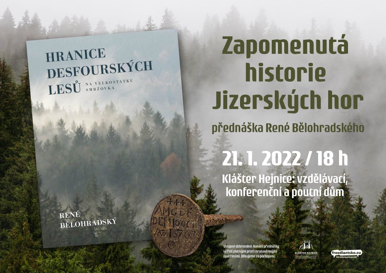 Přednáška René Bělohradského o zapomenuté historii Jizerských hor s prezentací knihy Hranice desfourských lesů.