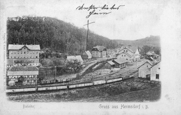 O zbudování tratě se začalo uvažovat s rozvojem průmyslových podniků v jihozápadní části Frýdlantska. Po úvahách o vybudování nakonec nerealizované tratě o normálním rozchodu ze saské Žitavy do pruské Lehnice, která měla procházet přes Frýdlant (a tedy přes Rakousko-Uhersko), se okresní úřad ve Frýdlantě zasadil o vybudování železničního spojení z Frýdlantu do Heřmanic. Ve spojení s německým podnikatelem Herrmannem Bachsteinem a jeho stavební firmou se počátkem roku 1899 začala trať stavět a 25. srpna 1900 byla za velkého zájmu přihlížejících uvedena do provozu. V okolí tratě se následně otevíraly další průmyslové podniky, čímž se využití této železnice zvyšovalo. Avšak vlivem krize během první světové války a následných nevýhodných finančních machinací se společnost Frýdlantské okresní dráhy, která trať provozovala, dostávala do obtíží, na něž její zaměstnanci reagovali i stávkou. Požadavky stávkujících se sice podařilo uspokojit, leč firma zabředala do stále větších problémů, až provoz na jejích tratích k začátku roku 1925 převzaly Československé státní dráhy (ČSD).
