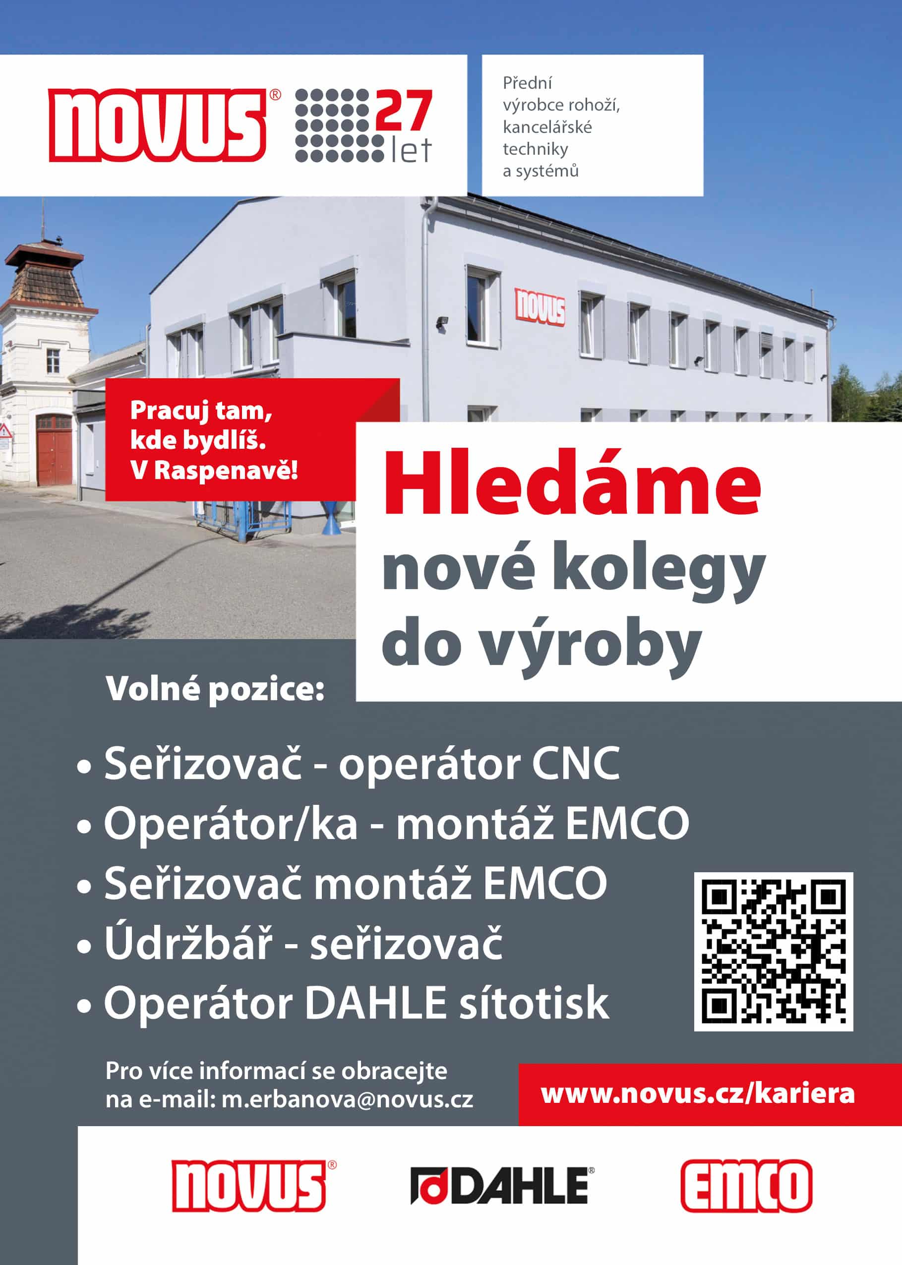 Pokud máte zájem o zaměstnání, vyplňte tento dotazník nebo zašlete svůj životopis na m.erbanova@novus.cz