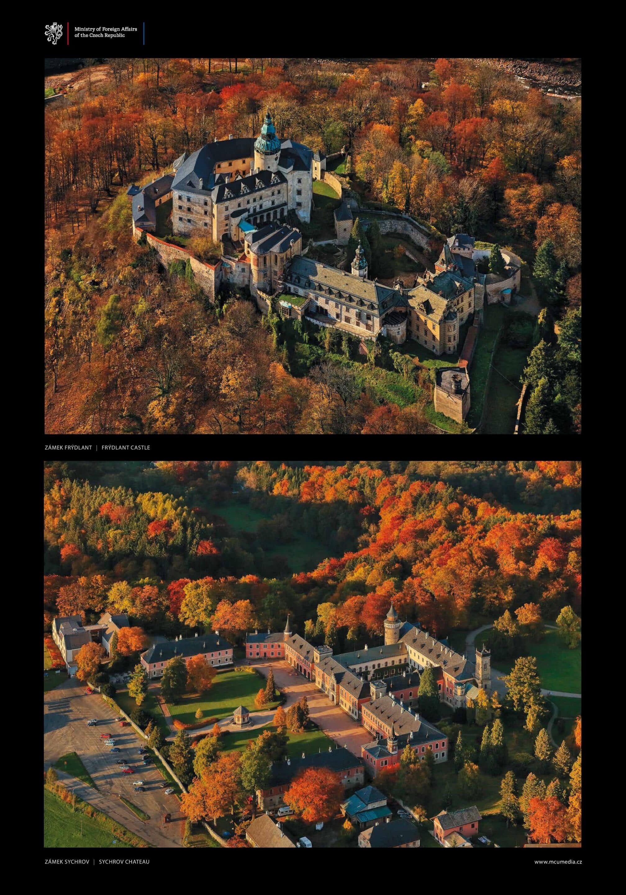 Mezi 120 barevnými velkoformátovými fotografiemi nechybí ani motivy z Libereckého kraje. Představují se hrady Bezděz a Trosky, zámky Frýdlant, Hrubá Skála a Sychrov, hotel a vysílač Ještěd a liberecká radnice. Autorem snímků je Libor Sváček, který je vybral ze své autorské fotografické publikace Česká republika – to nejlepší z Čech, Moravy a Slezska.