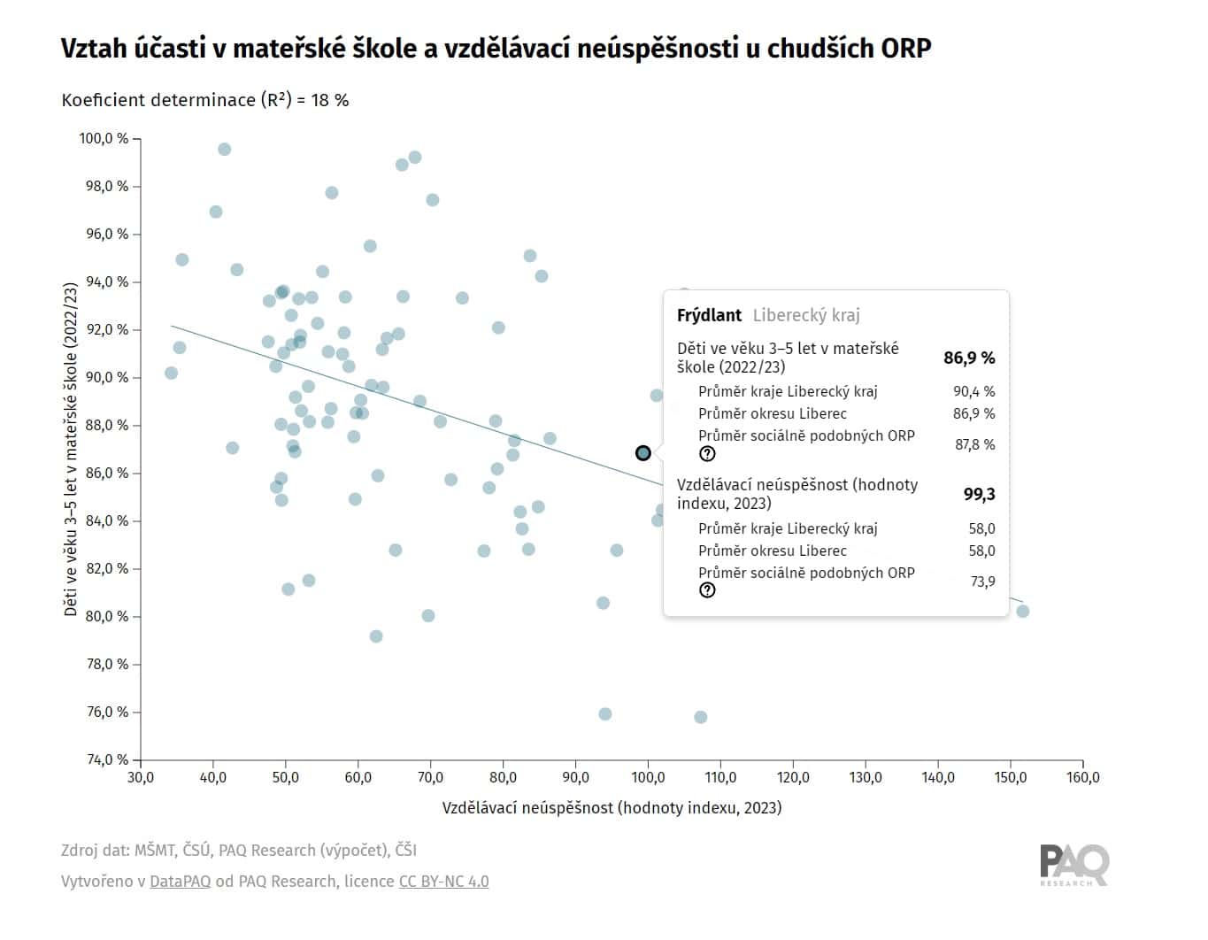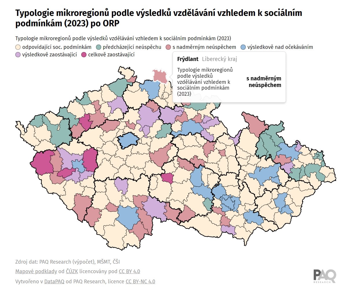Od roku 2022 má Frýdlantsko k dispozici každoroční data z výzkumu PAQ Research. Ten propojuje vzdělávací výsledky žáků s jejich sociálním zázemím a umožňuje region porovnat s podobně zatíženými oblastmi – například s Broumovem, Bruntálem, Děčínem, Havířovem, Kadaní,...