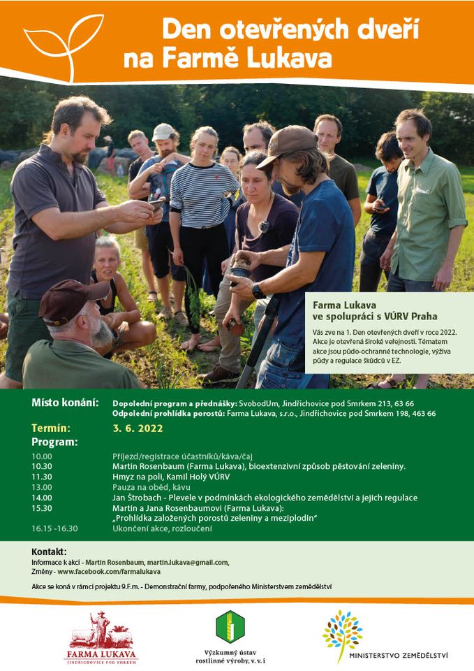 Farma Lukava ve spolupráci s VÚRV Praha vás 3. června 2022 od 10.00 hodin zve na 1.den otevřených dveří v roce 2022. Akce je otevřená široké veřejnosti. Místo konání: Dopolední program a