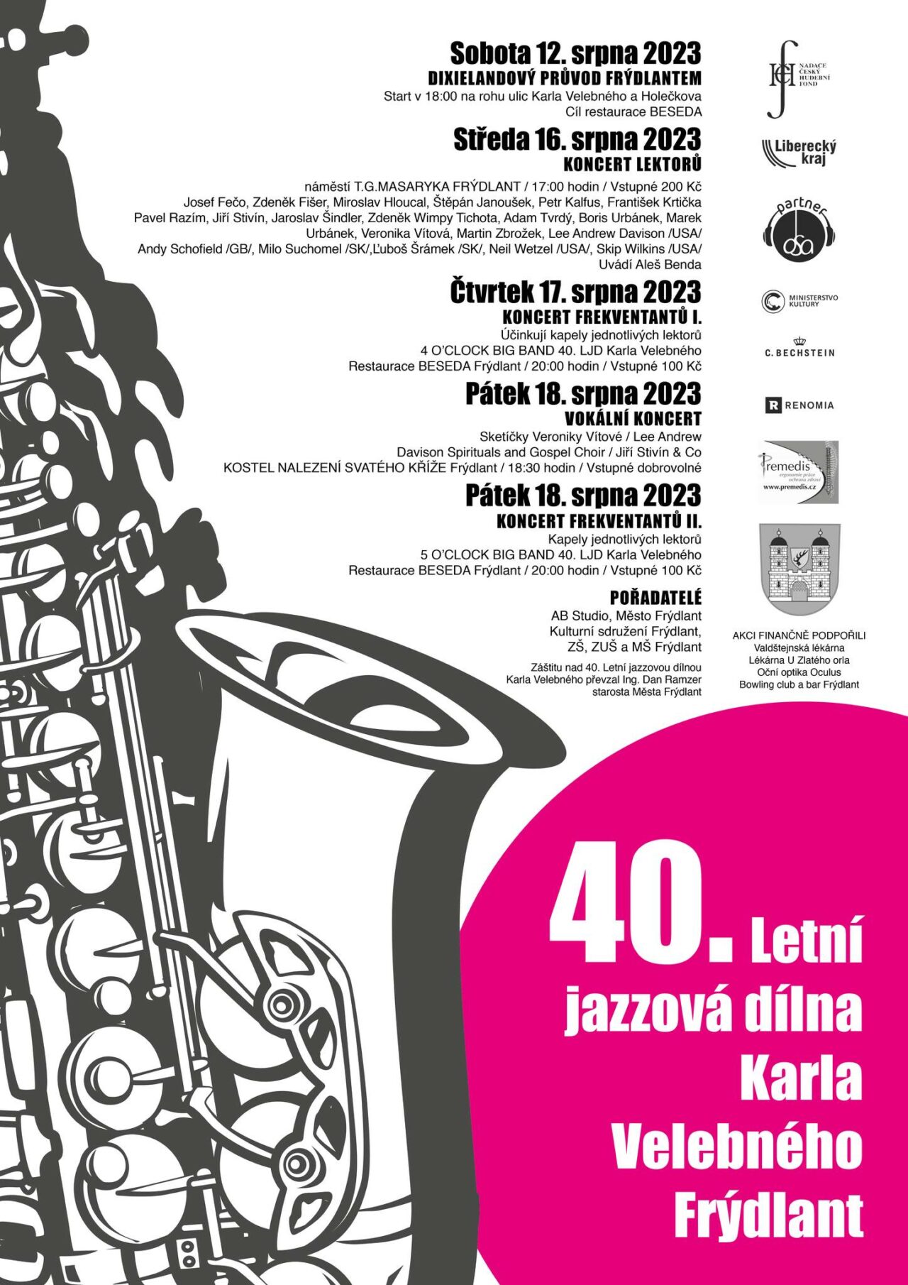 Ve Frýdlantu již tradičně proběhne Letní jazzová dílna Karla Velebného, která je hudebním workshopem jazzových hudebníků a koná se ve Frýdlantu za účasti předních českých jazzových sólistů a zahraničních lektorů. Konat se bude od 12. do 18. srpna 2023. Letos nás čeká jubilejní 40. ročník.
