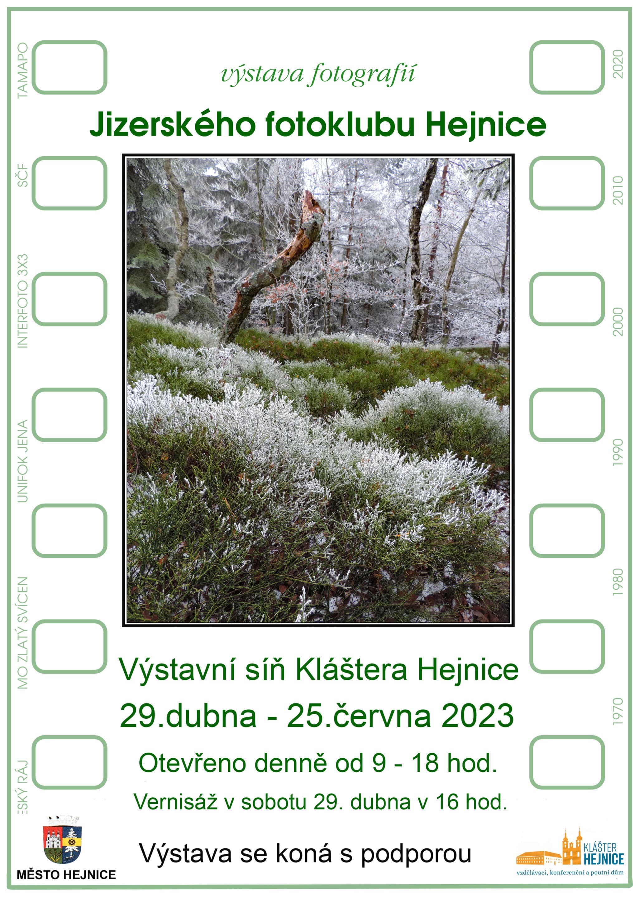 Tradiční výstava fotografií Jizerského fotoklubu Hejnice se koná ve dnech 29. dubna až 25. června 2023 ve výstavní síni Kláštera