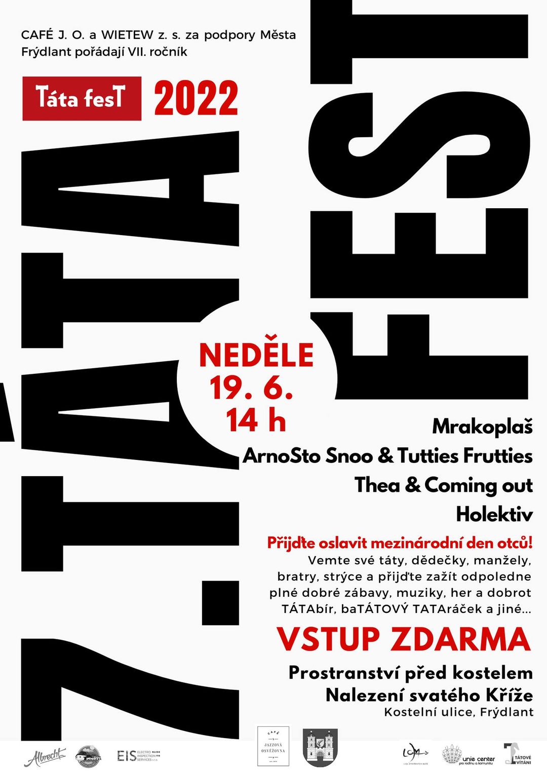 Již po sedmé Vás zveme na TÁTAFEST konaný ke Dni otců do Frýdlantu 19.června od 14.00 hodin, na prostranství mezi Kostelem Nalezení Sv. Kříže a CAFE J.O., Kostelní ulice.