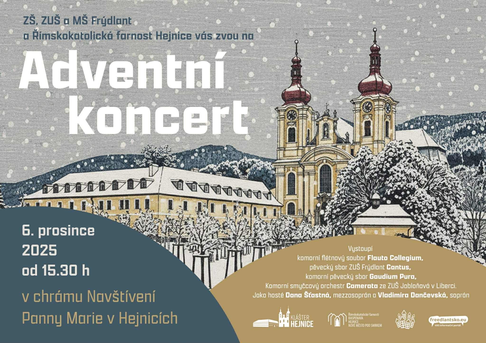 2025so06prosinec15.3017.30Adventní koncert – HejniceChrám navštívení Panny Marie v Hejnicích15.30 - 17.30(GMT+01:00) Druh akceAdvent,Hejnice,Hudba,Koncert,Koncert vážné hudby,Vánoční akce