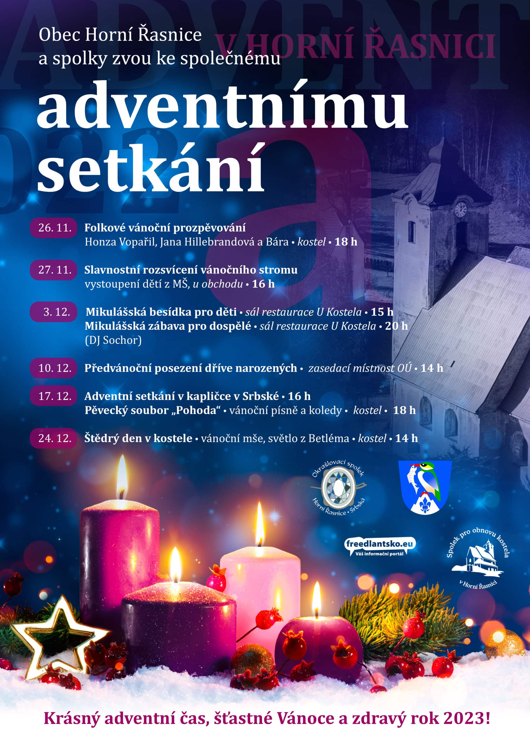 Obec Horní Řasnice a spolky zvou ke společnému adventnímu setkání v Horní Řasnici