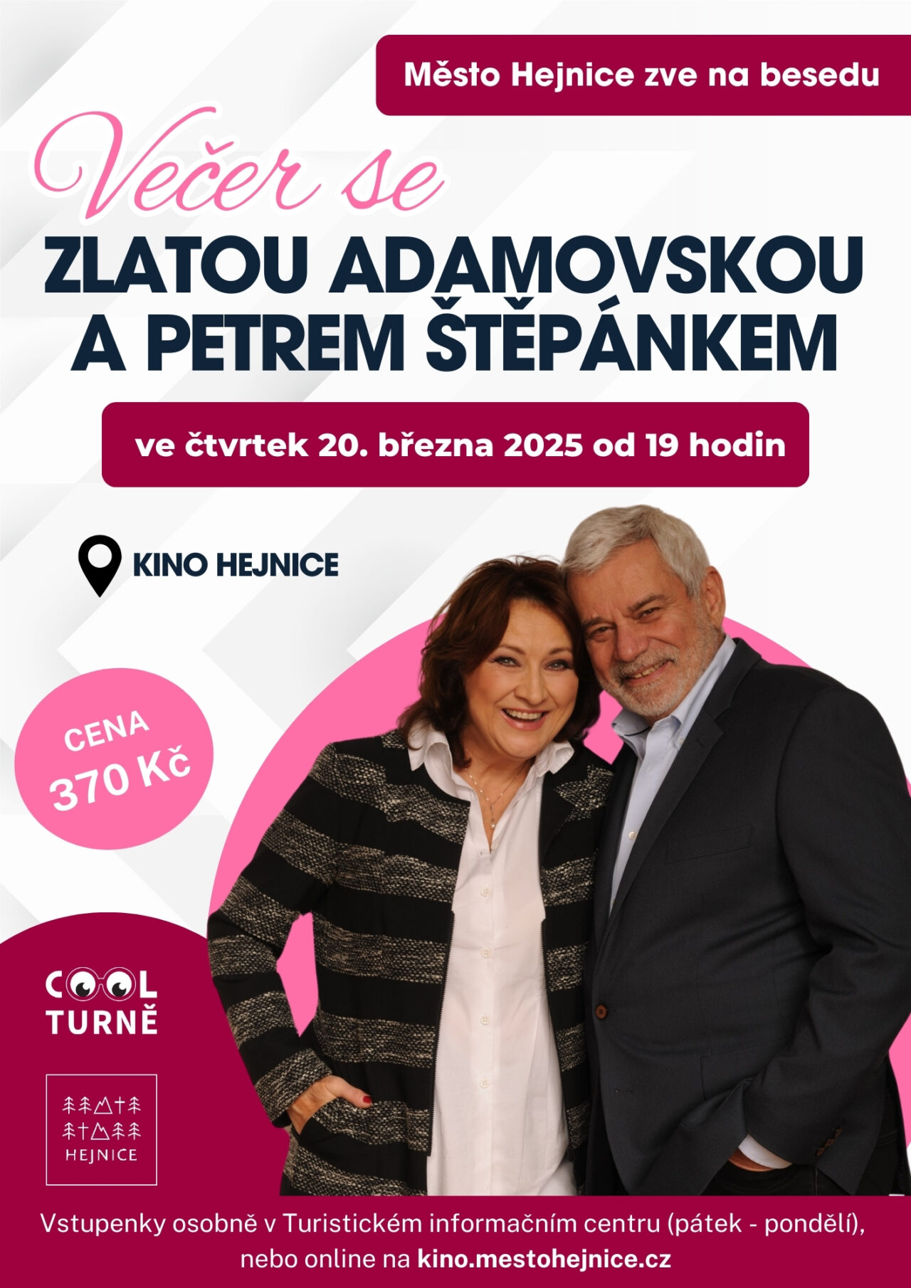 20. 3. 2025 – Beseda se Zlatou Adamovskou a Petrem Štěpánkem ve dvou časech: 16:30 a 19:00