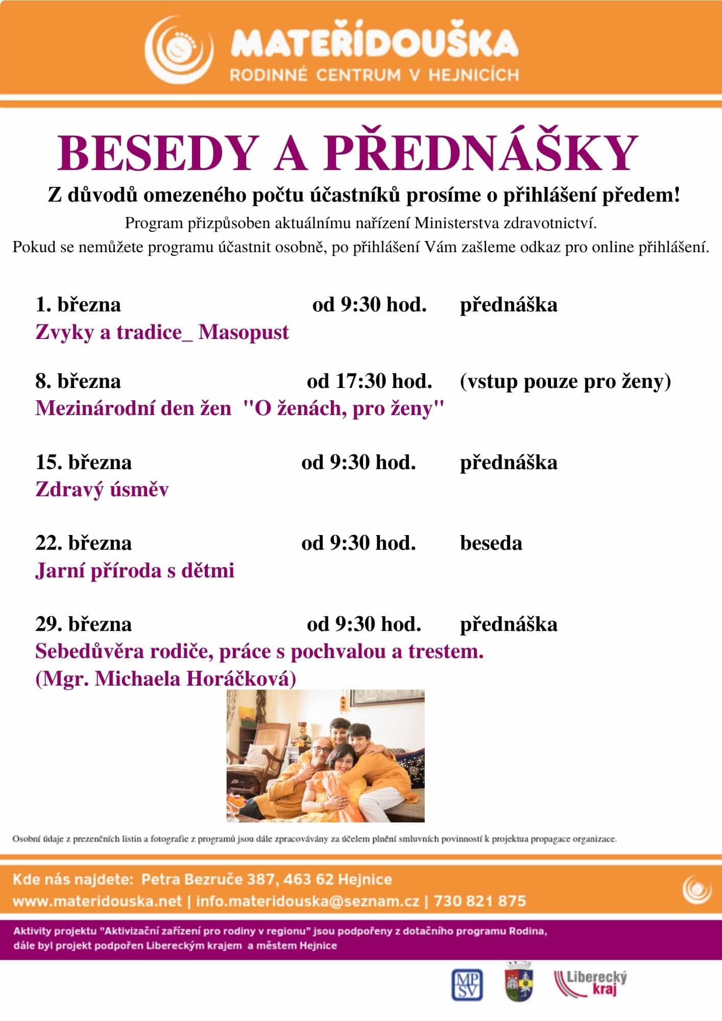 Z důvodů omezeného počtu účastníků prosíme o přihlášení předem! Program přizpůsoben aktuálnímu nařízení Ministerstva zdravotnictví. Pokud se nemůžete programu účastnit osobně, po přihlášení Vám zašleme odkaz pro online přihlášení. 1. března