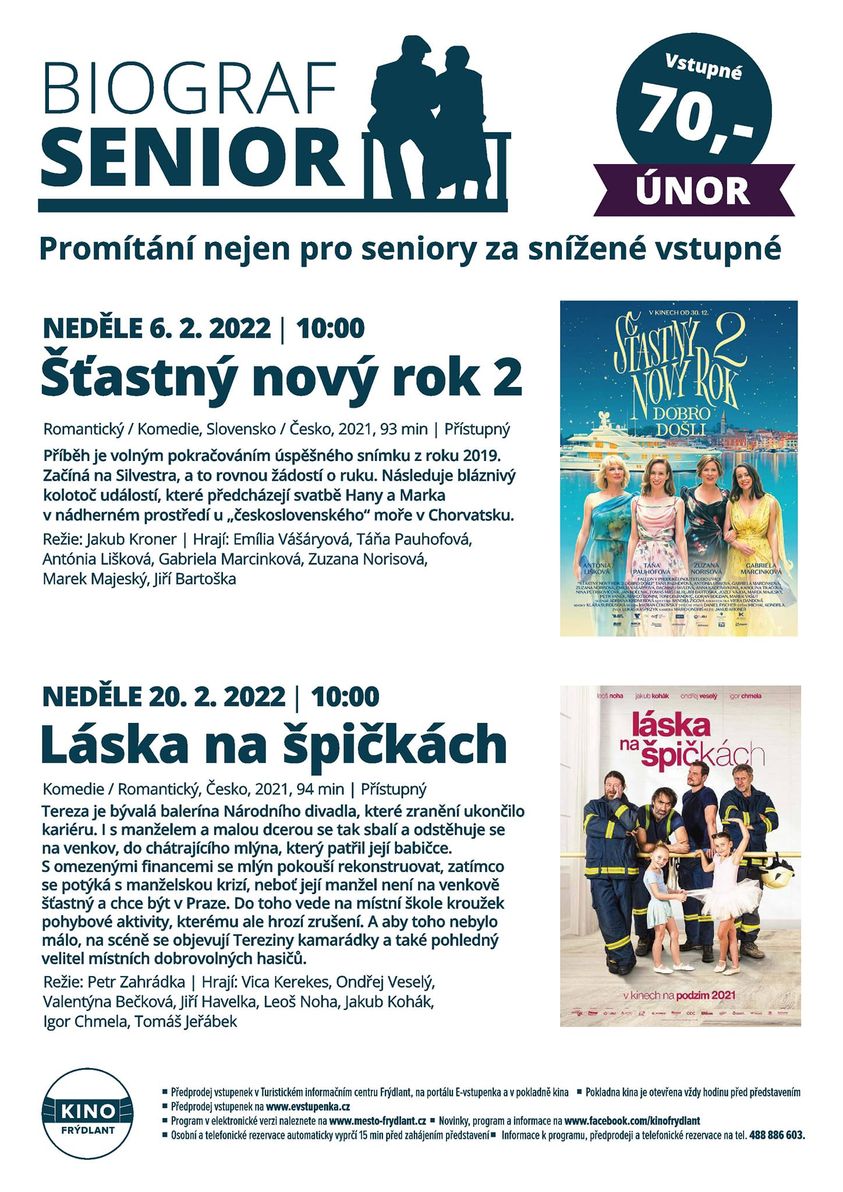 Od února každou 1. a 3. neděli v měsíci budeme od 10.00 hodin promítat za snížené vstupné 70 korun a to nejen pro seniory!!