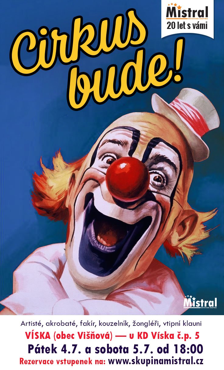 Artisté, akrobaté, fakír, kouzelník žongléři a klauni v pátek a v sobotu 4. – 5. 7. před kulturním domem ve Vísce, vždy od 18:00.